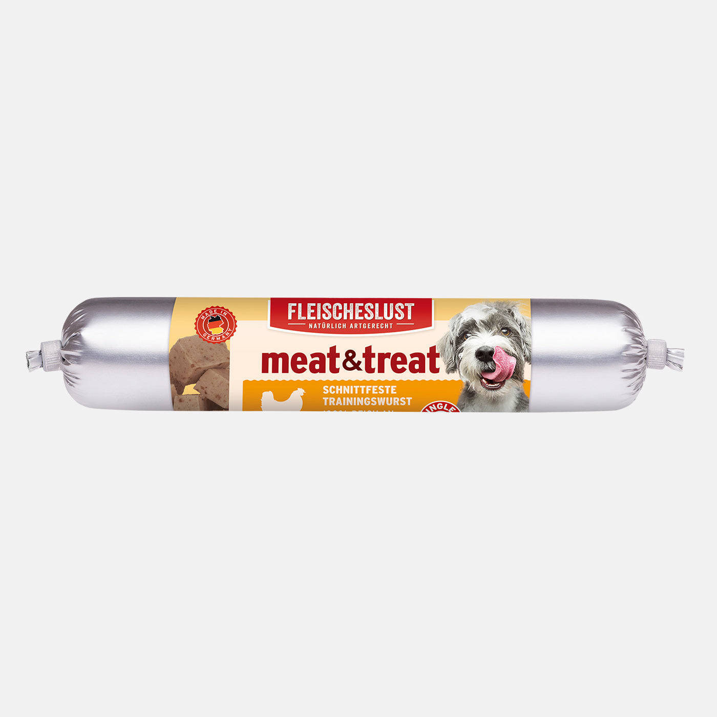 - Poultry Meat & Treat sausage is a complimentary training treat for dogs