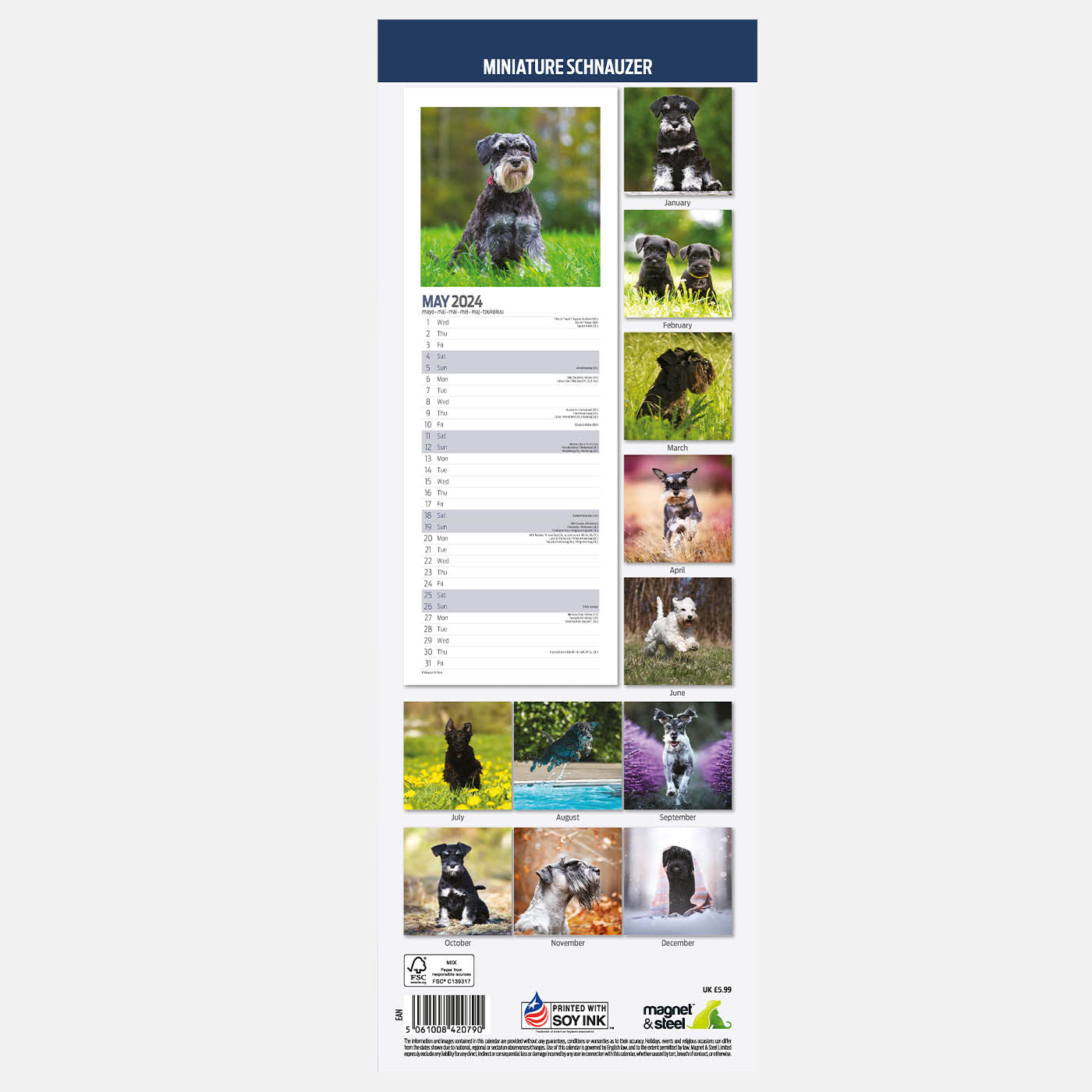 This Miniature Schnauzer Slim Calendar 2025 is the perfect gift for Schnauzer lovers. With an adorable photo for every month, stay organised with a clear grid and plenty of space for notes. Its slim design takes up minimal room, making it a practical and cute addition to any desk or wall.
