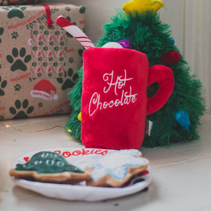 Reward your furry friend this Christmas with the P.L.A.Y. Christmas Ho Ho Ho Hot Chocolate toy. Featuring an adorable hot chocolate design, it lets your pup join in the festive fun. Equipped with squeakers for extra playtime excitement and double-stitched for long-lasting durability, this toy is perfect for energetic chewers. The eco-friendly stuffing made from recycled plastic bottles ensures a greener choice. Plus, it’s machine washable and dryer friendly, making post-play cleanup a breeze. Delight your dog with a festive toy they’ll love and that lasts.