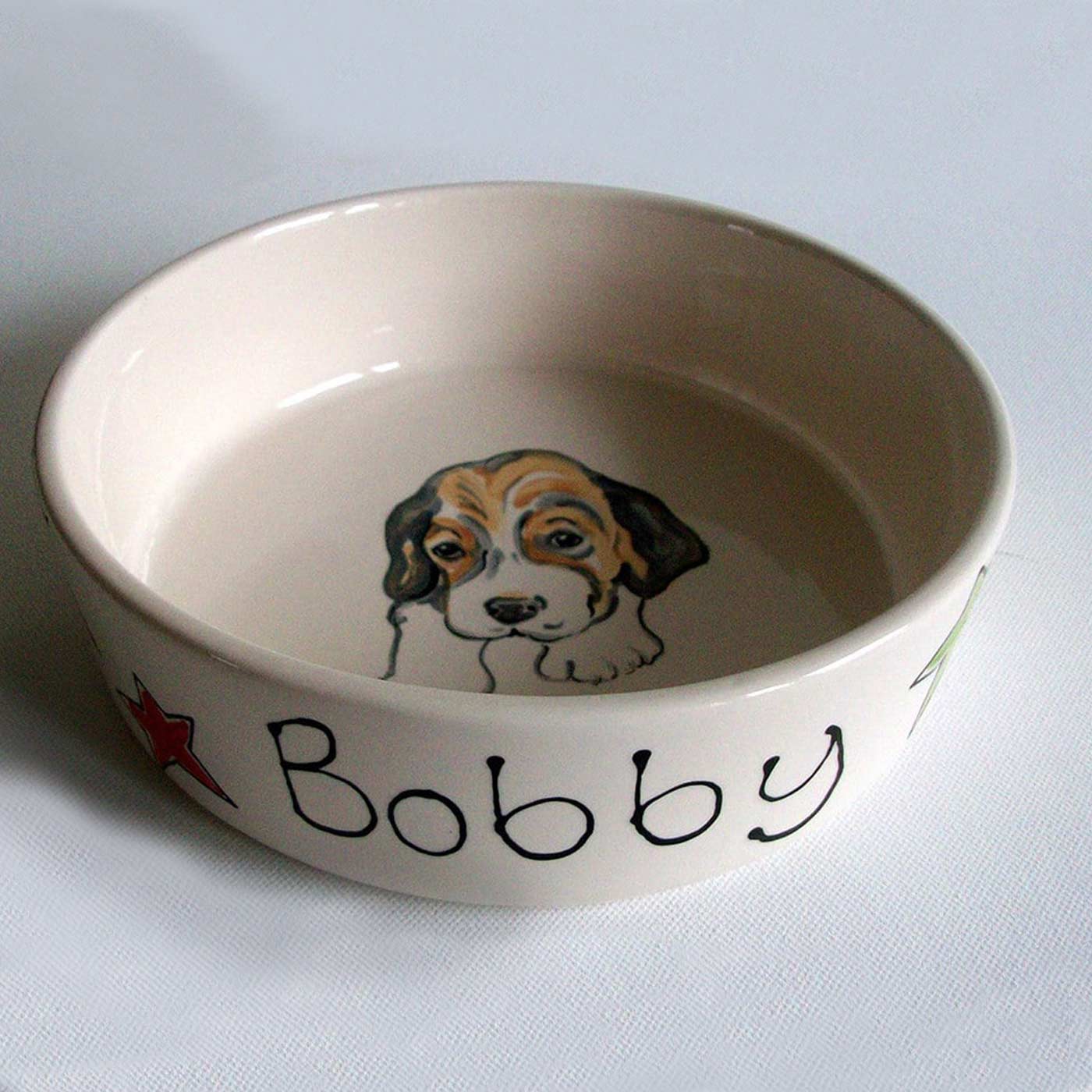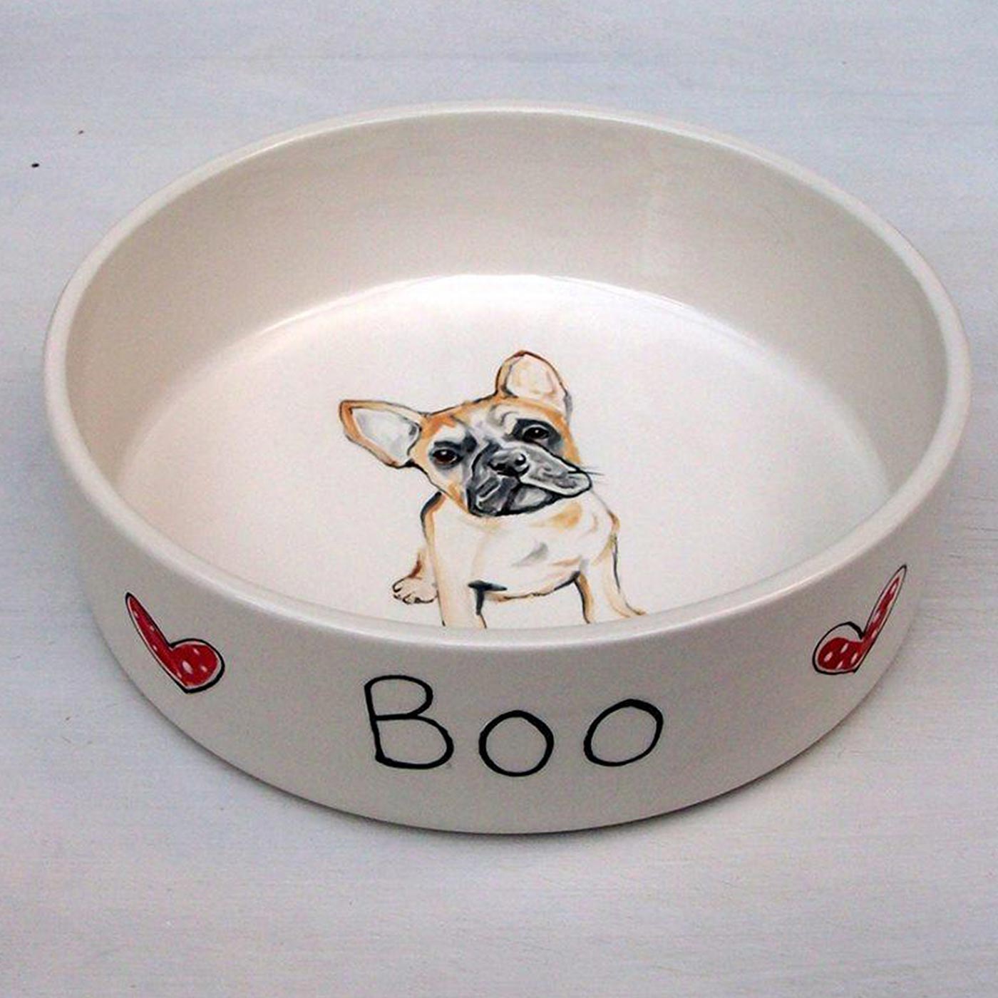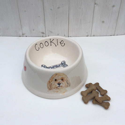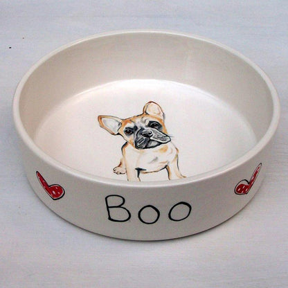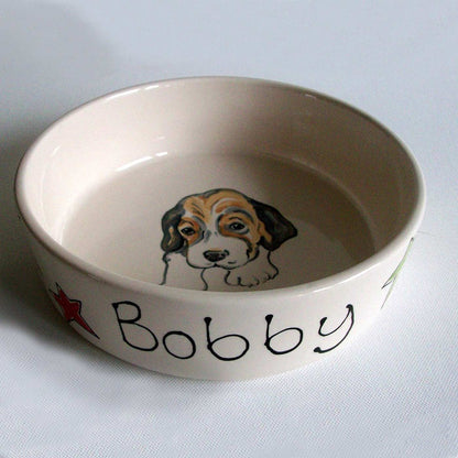A beautiful, personalised dog bowl decorated with a portrait of your dog. Lovingly handcrafted and painted, these dog bowls have been glazed and kiln-fired to give a long-lasting finish. The bowls are perfect for both water and food and are dishwasher safe. There are two sizes available so you can pick a size to suit your pet and needs.