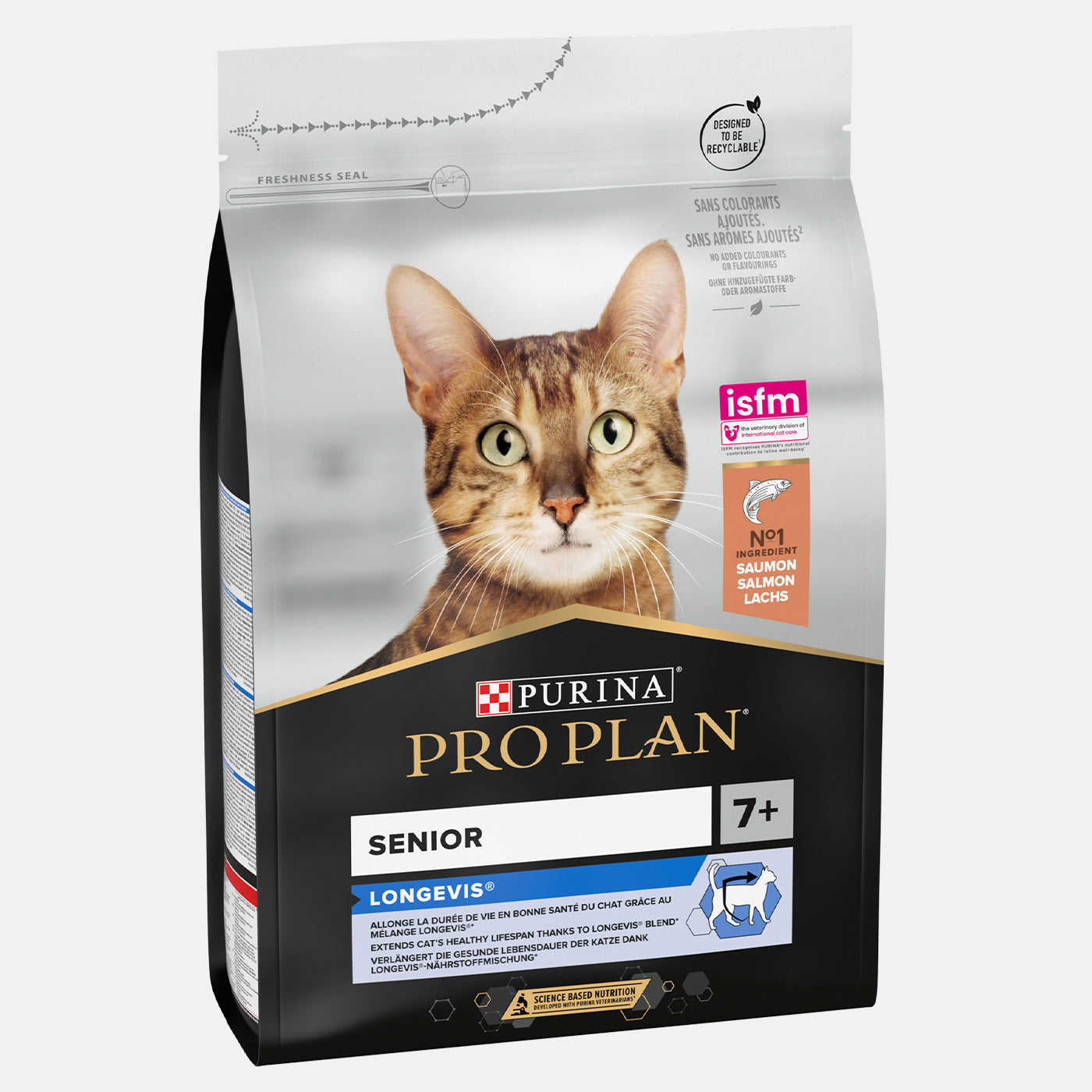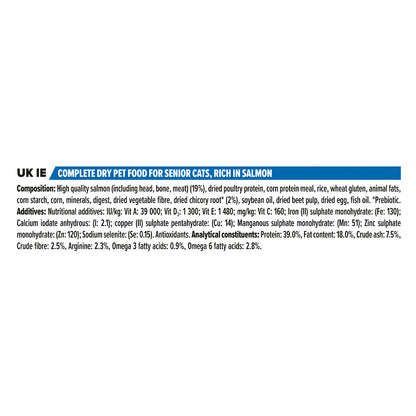PRO PLAN Original Senior Dry Cat Food with LONGEVIS Salmon provides 100% of the essential nutrients and Omega-6 fatty acids necessary for cats over 7 years of age. This specialized formula includes prebiotics, proven to help support balanced gut microflora for digestive health, as well as ingredients to help support brain health. All of this is in a delicious and highly palatable recipe featuring salmon as the number one ingredient for a flavor cats love.