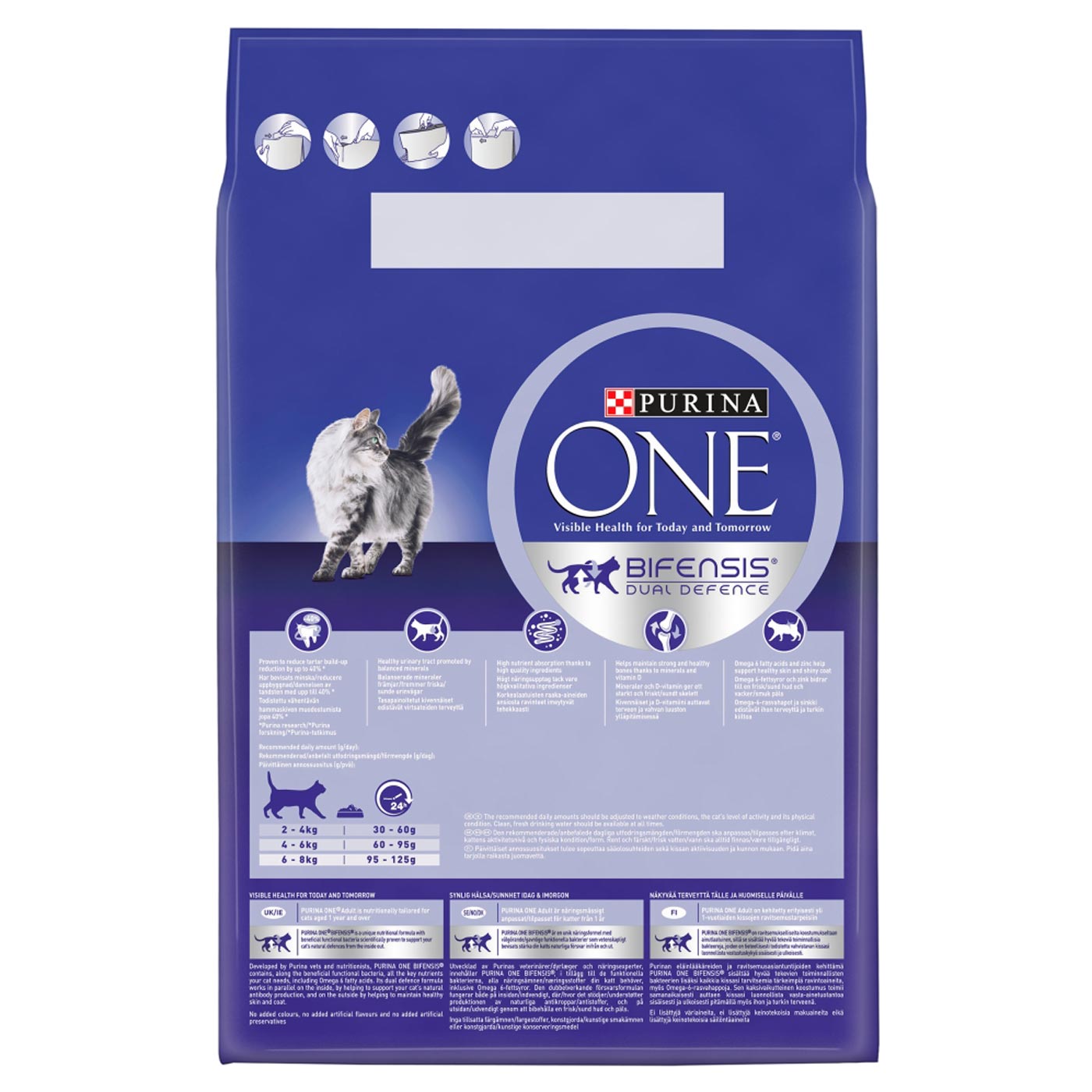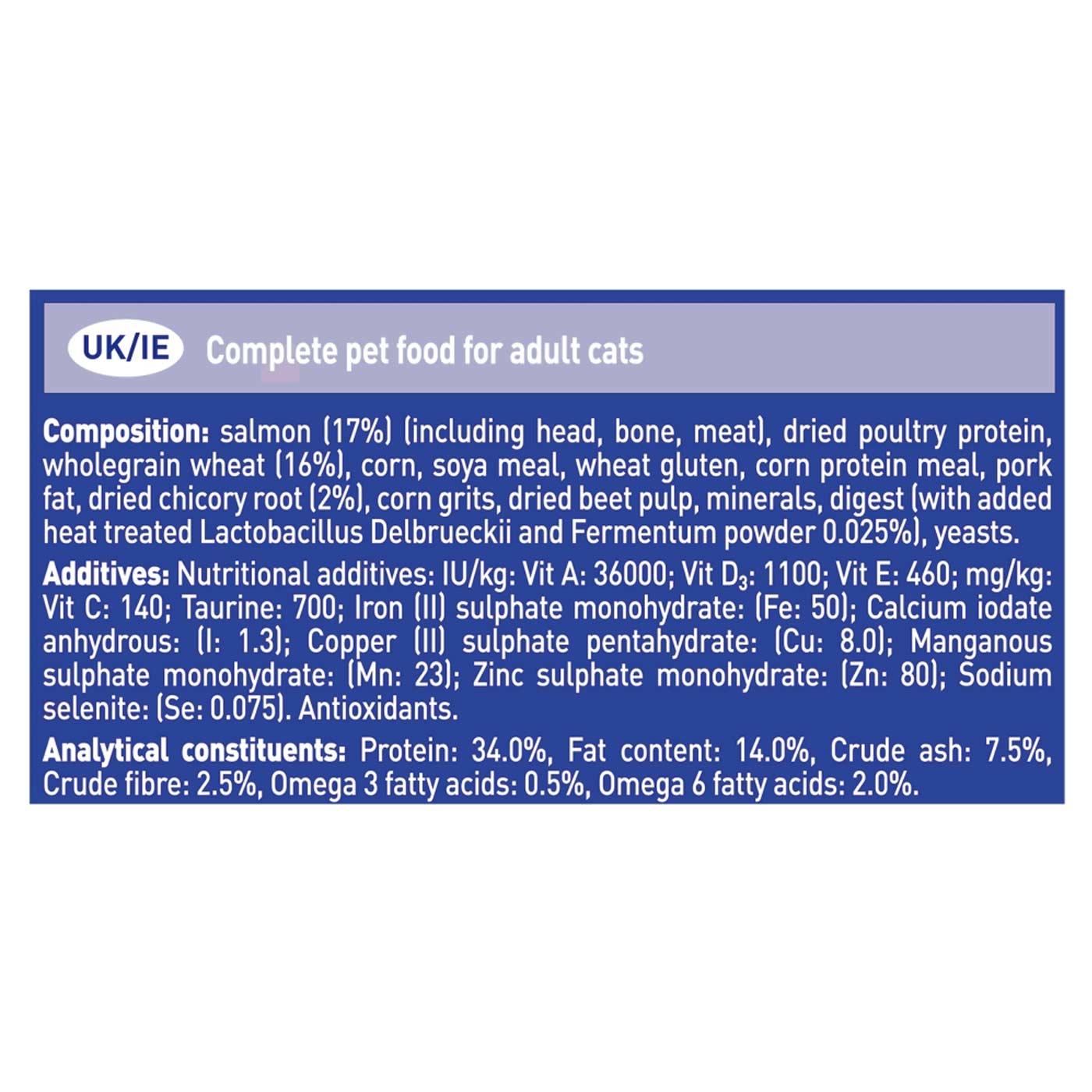 This Purina One Adult Cat Salmon and Whole Grain 3KG is a complete and balanced dry food that contains essential minerals, which helps promote a healthy urinary tract and glossy coat. High quality salmon and whole grain provide keynutrients to keep your cat's natural defences strong. Scientifically proven to support your cat's wellbeing inside and out.