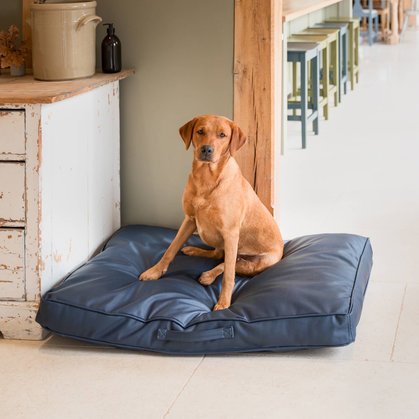 Dog Cushion With Removable Cover in Rhino Tough Pacific Faux Leather by Lords & Labradors