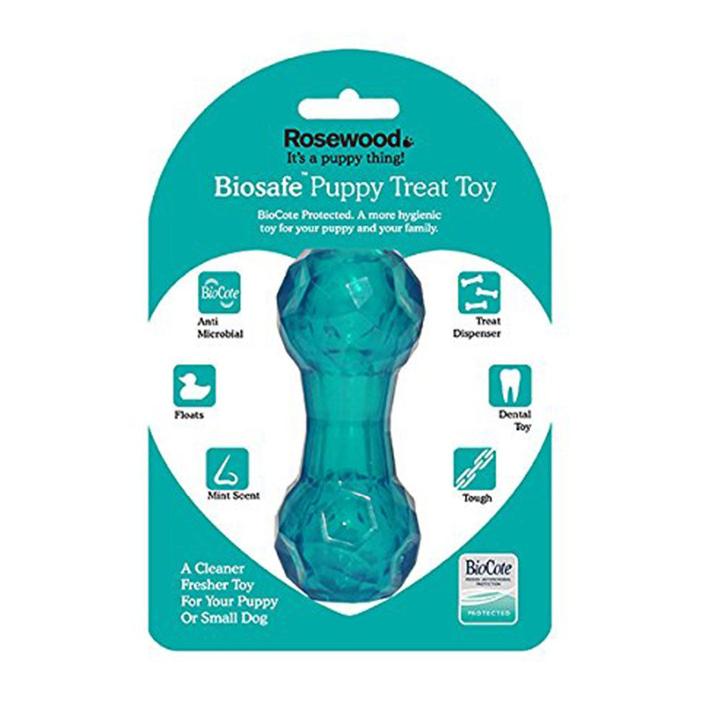 This Rosewood Biosfe Dumbell Puppy Toy is the perfect teether toy for puppies. It will help to soothe and ease aching gums during the teething period, but will also be a great boredom buster. It even has an opening where you can add some puppy treats to make play even more exciting.