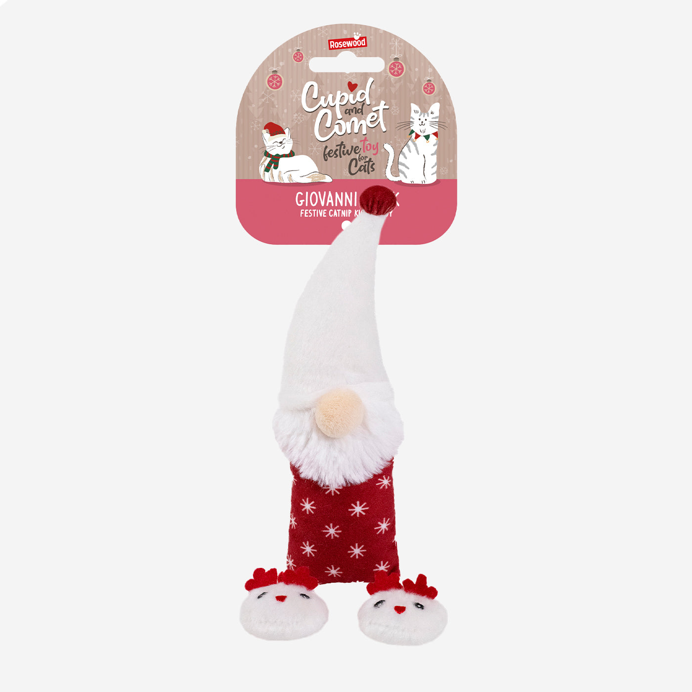 - Catnip toy with feathers, crinkle, and bells