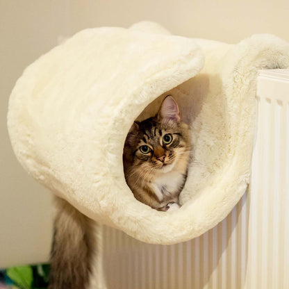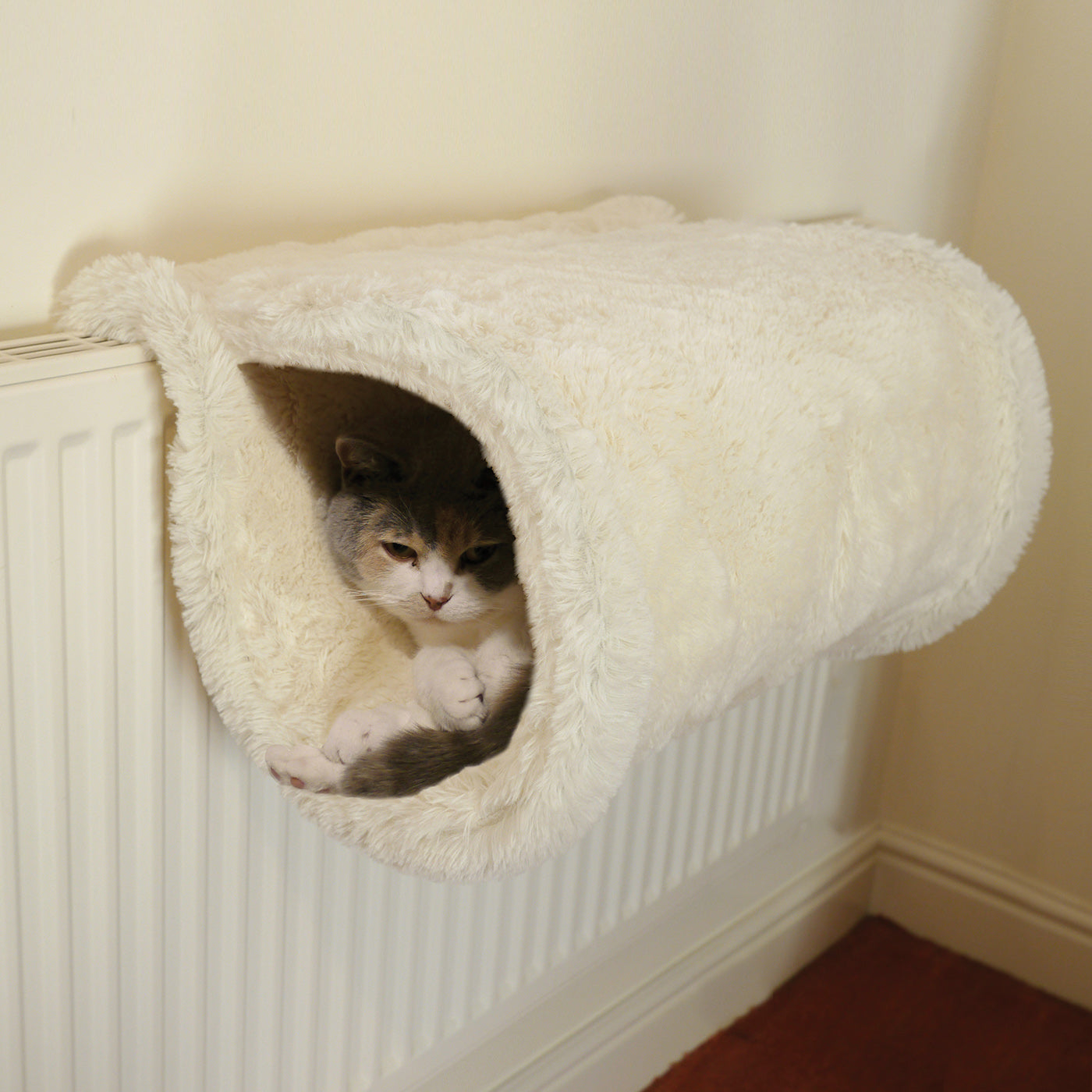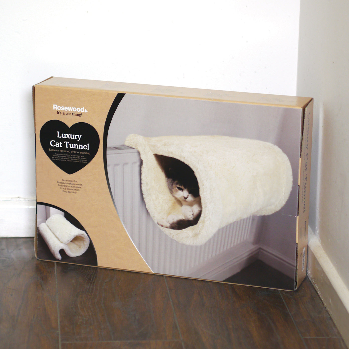 This luxurious cat tunnel is purr-fect for felines who love to explore and hide. This Rosewood Cat Tunnel is a warm and cosy place will do just that. Made from faux fur, this fun kitten hideaway will fit over most radiators, or can be free standing, and it's machine washable removable cover means it's easy to clean.