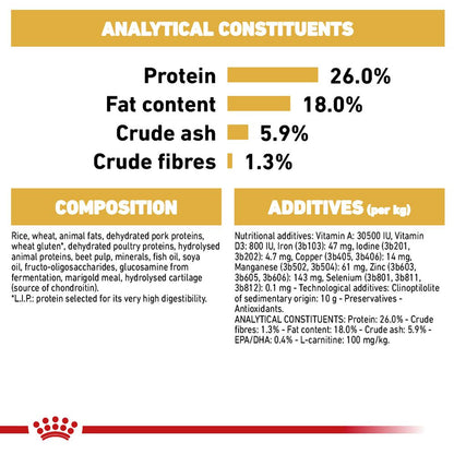 Royal Canin French Bulldog Adult Dog Food is specially crafted to support your French Bulldog’s unique needs. This complete dry food helps maintain muscle mass while reducing intestinal fermentation, which can cause digestive discomfort, flatulence, and unpleasant stool odour. Its formula also supports the skin’s natural barrier, promoting healthy skin. Ideal for dogs aged one year and older, it ensures your French Bulldog stays healthy and comfortable every day.