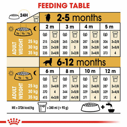 Royal Canin Golden Retriever Dry Puppy Food is specially formulated for puppies aged 2 to 15 months. Enriched with borage oil and vitamin E, it supports your puppy’s natural defenses and promotes healthy skin and a shiny coat. High-quality protein aids digestive health, ensuring your growing Golden Retriever gets the nutrition needed for a strong start in life. This complete dry food helps nurture your puppy’s unique needs with every meal.