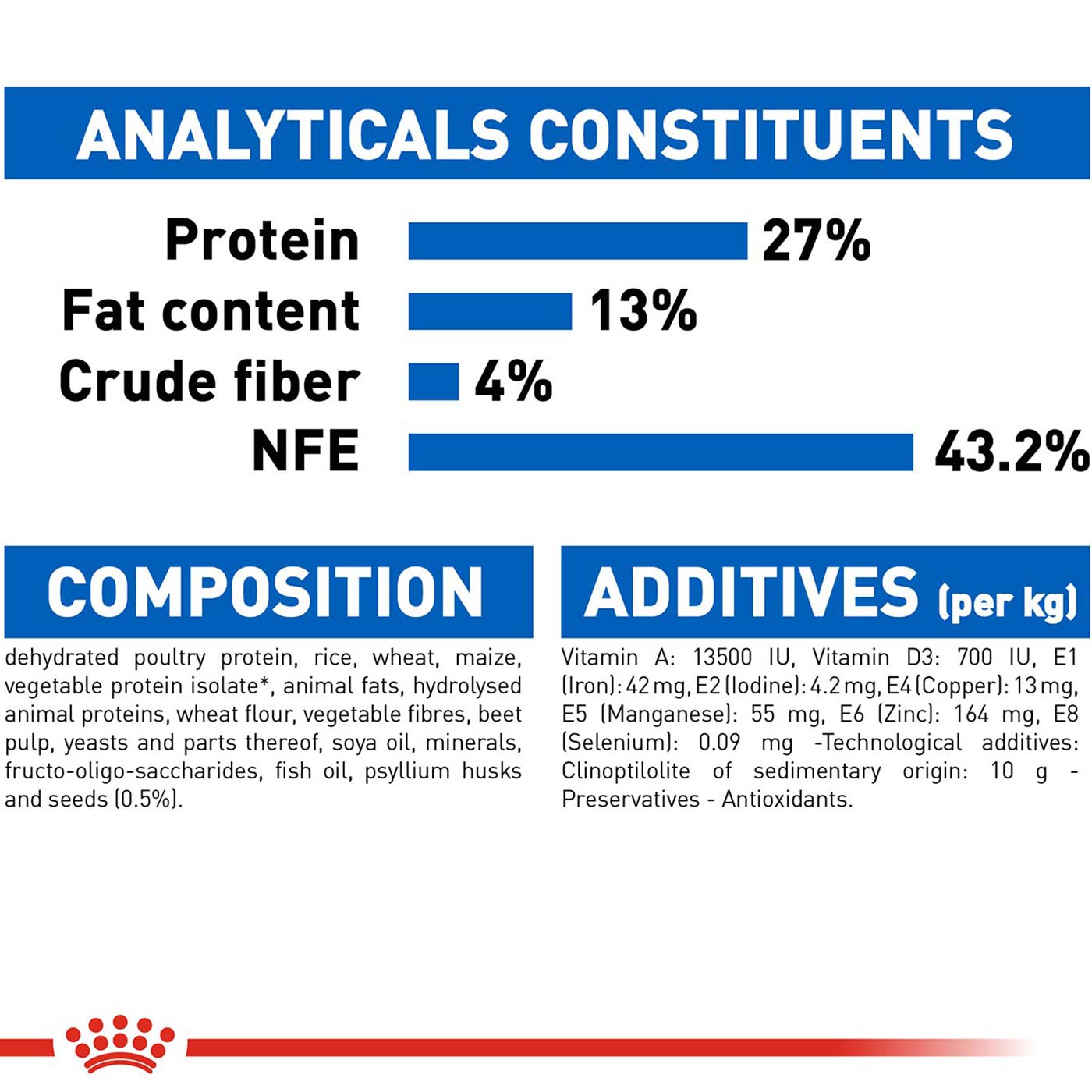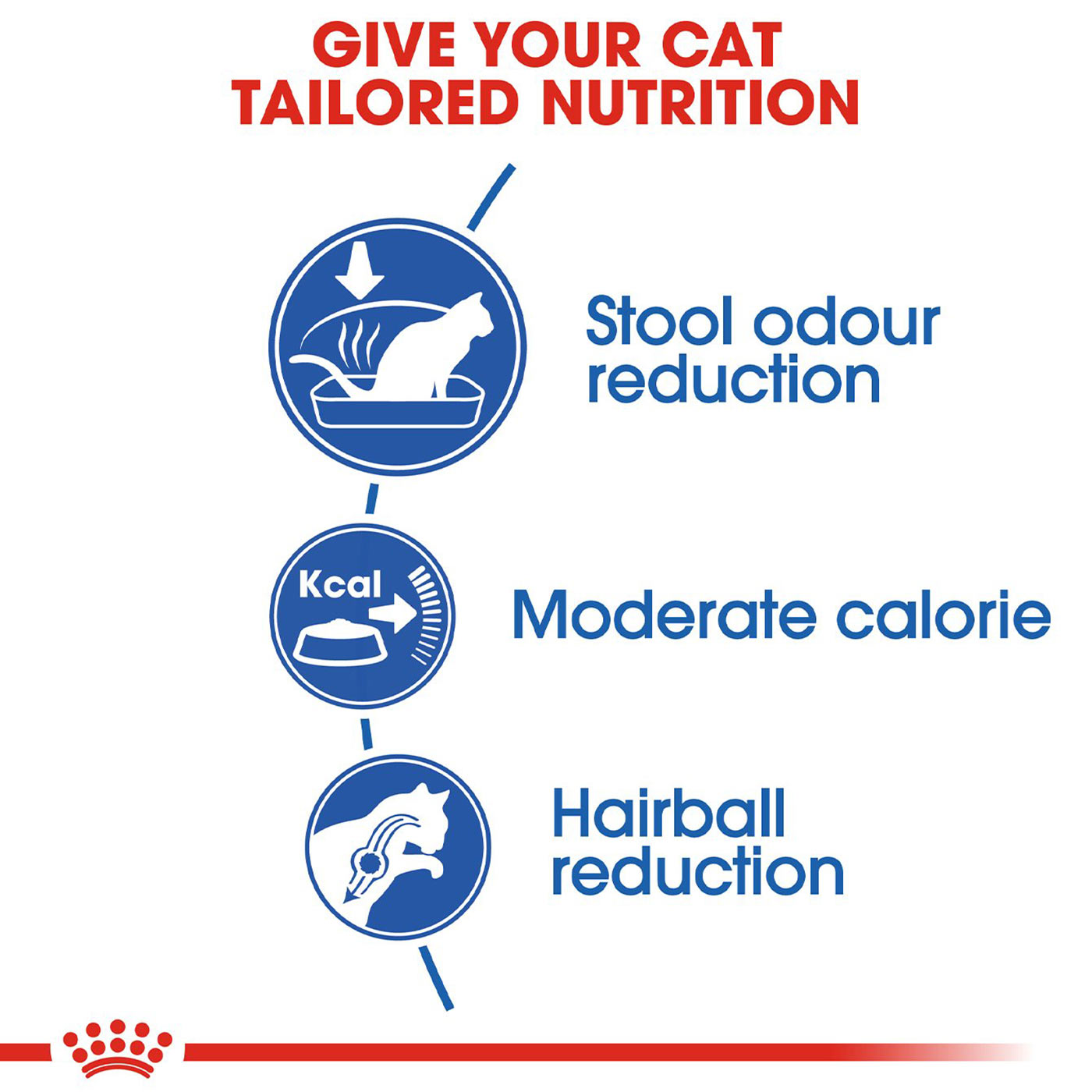 A complete and balanced dry food diet for indoor cats, with a moderate fat content to suit their activity level. Highly digestible formulation to help reduce both stool odour and hairballs, and maintain the urinary health of adult cats aged 1-7.