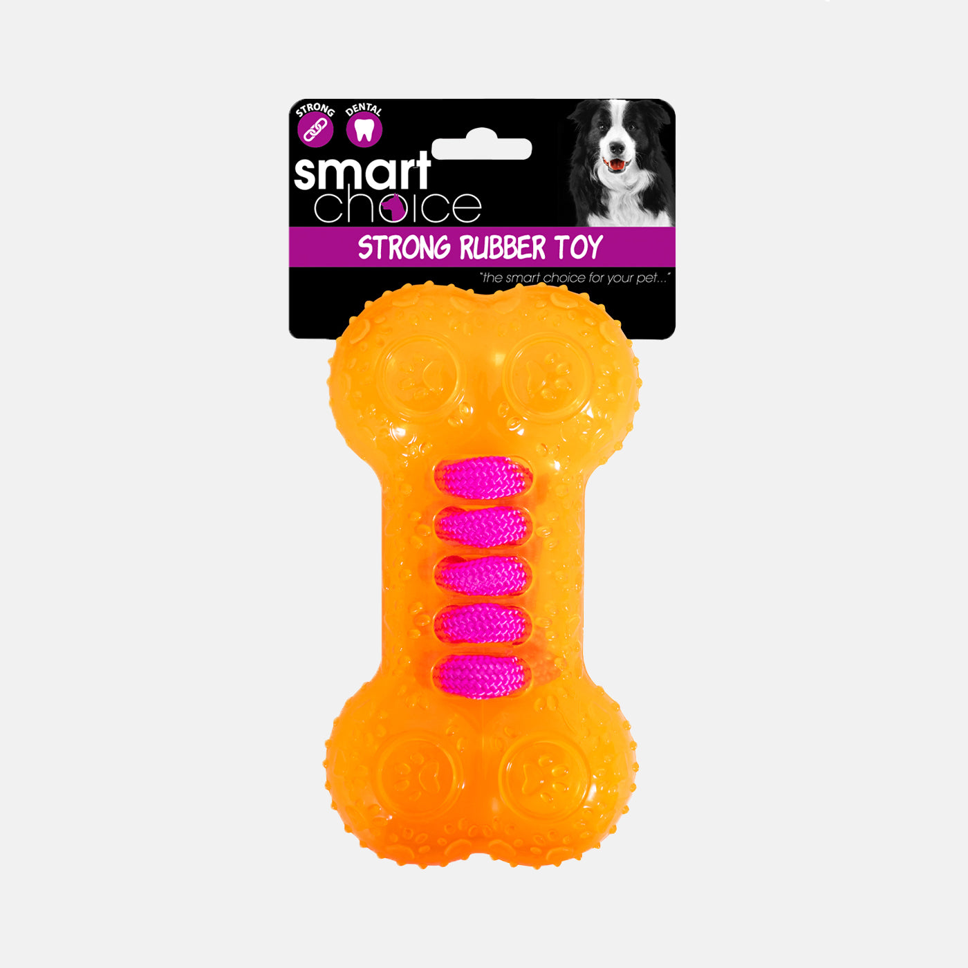 This Rubber Ring/Bone Dog Toy is a great option for strengthening your dog's jaw muscles, while also helping to reduce the build-up of plaque and tartar. The combination of the rubber and rope texture provides stimulation for your pup, while the strong rubber ensures lasting durability.