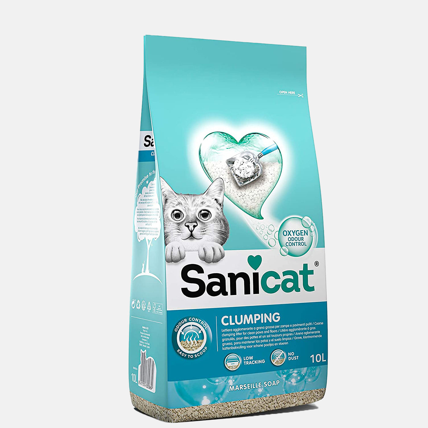 Sanicat Clumping Marseille Soap Scented Cat Litter 10L has a light-weight absorbent formula that clumps and reduces odours. Its Marseille Soap scent keeps the litter box feeling fresh. Featuring no dust and coarse granules, it's gentle on your cat's paws and helps keep mess to a minimum.