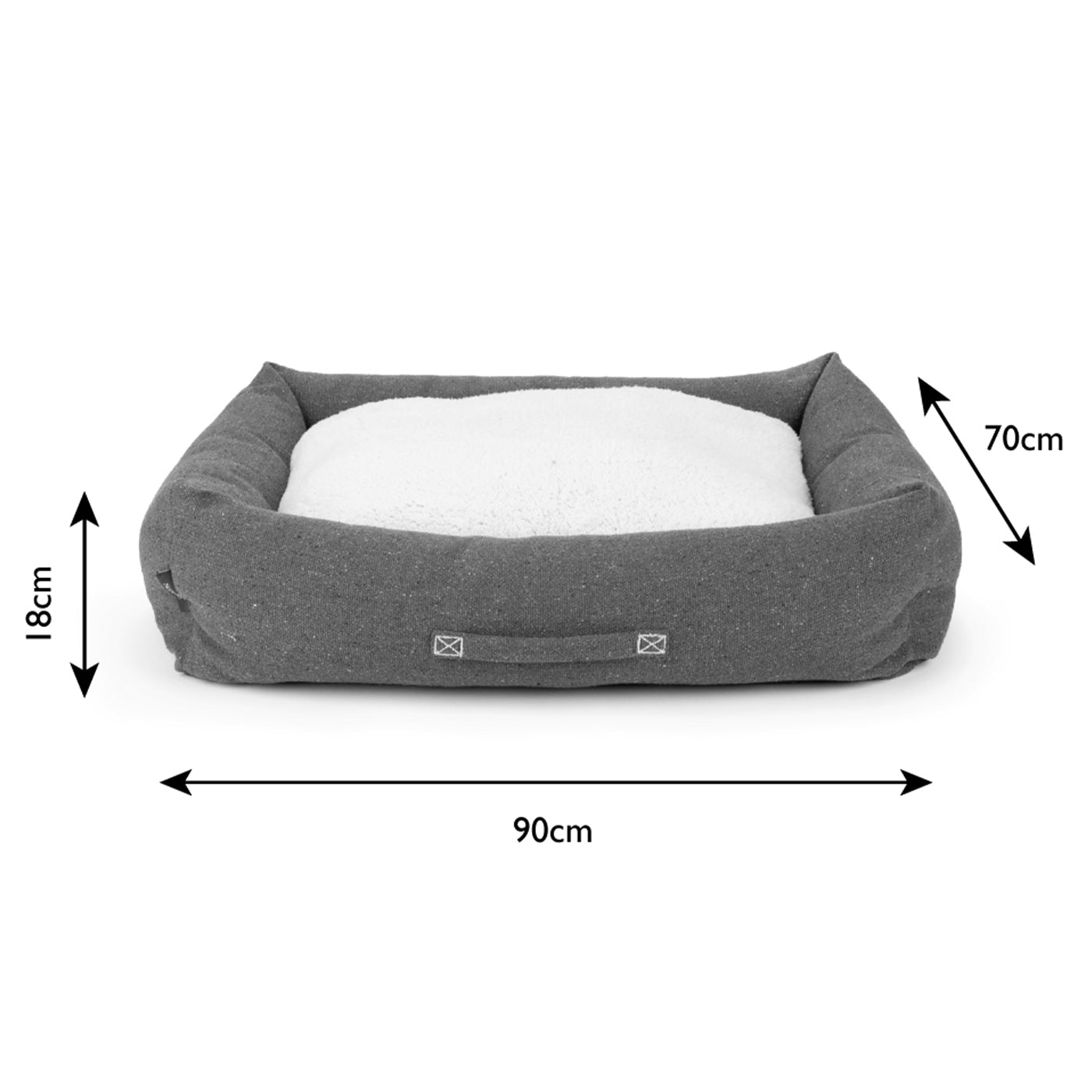 - Cosy sherpa and raised sides for a comfy sleep