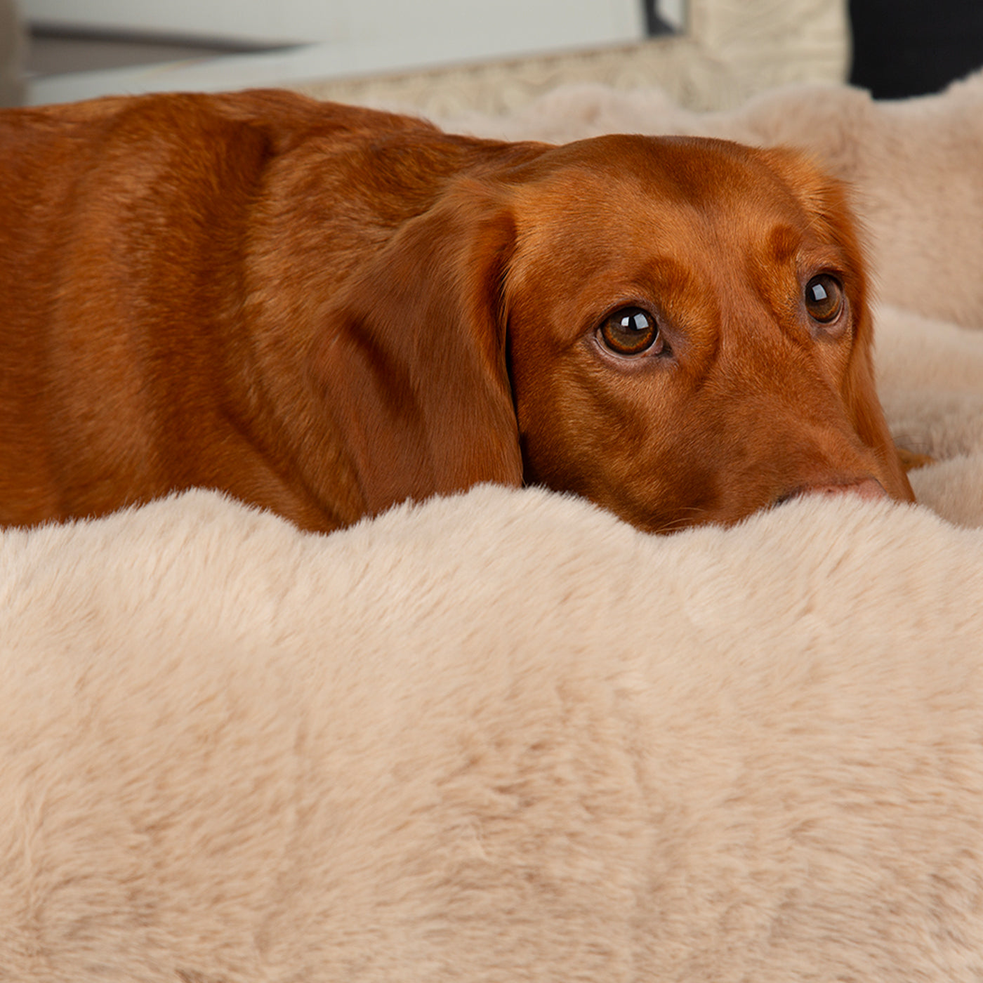 Indulge your furry friend with the Scruffs Alpine Champagne Box Bed. Its bolster side walls provide comfort for pups who love to rest their head, while the thick-cut faux fur offers a plush snuggle experience. With 100% recycled filling and a non-slip base, this bed is both eco-friendly and practical. Available in 3 sizes and 2 colours for the perfect fit.