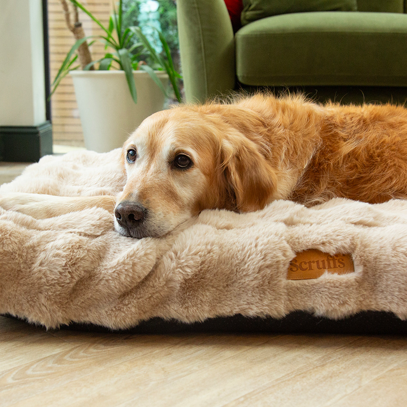 Indulge your furry friend in the ultimate comfort with our Scruffs Alpine Champagne Dog Mattress. Made with thick-cut faux fur, your beloved pup will have the most luxurious sleep. The beautiful champagne colour adds a touch of elegance, while the 100% recycled filling and machine washable feature offer easy maintenance. A non-slip base ensures safety and the choice of 2 colours and 3 sizes allows for a perfect fit.