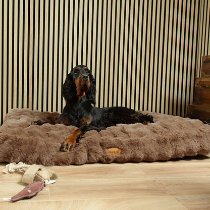 Indulge your furry best friend with the Scruffs Alpine Taupe Dog Mattress. Made with thick-cut faux fur, this luxurious bed offers the perfect sleeping experience. In a beautiful, neutral taupe colour, it will complement any home decor. Plus, with 100% recycled filling and a non-slip base, it's both eco-friendly and practical. Machine washable for easy cleaning. Available in 2 colours and 3 sizes.