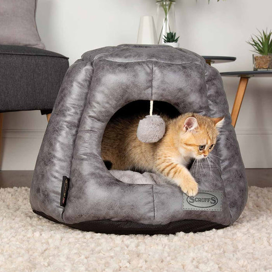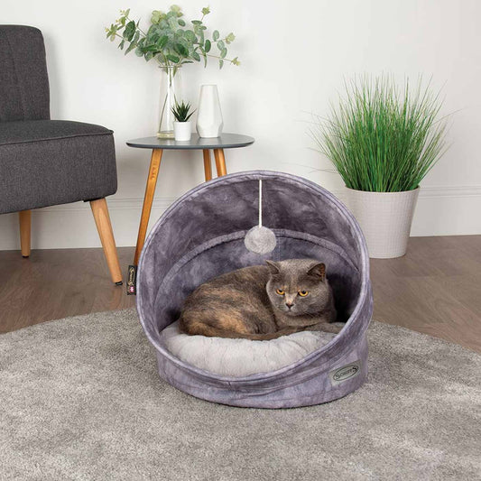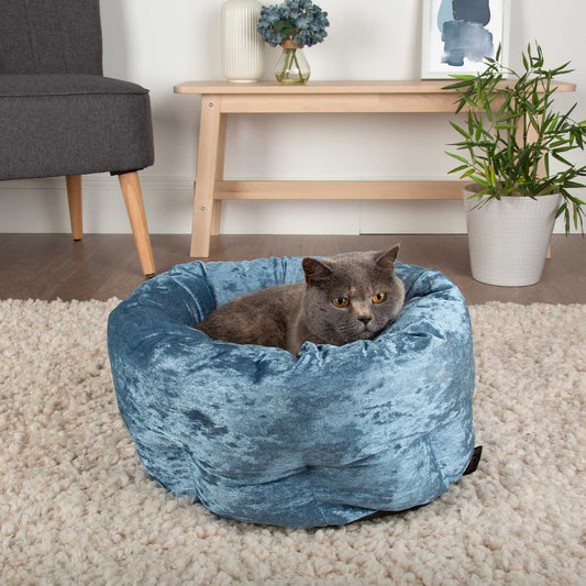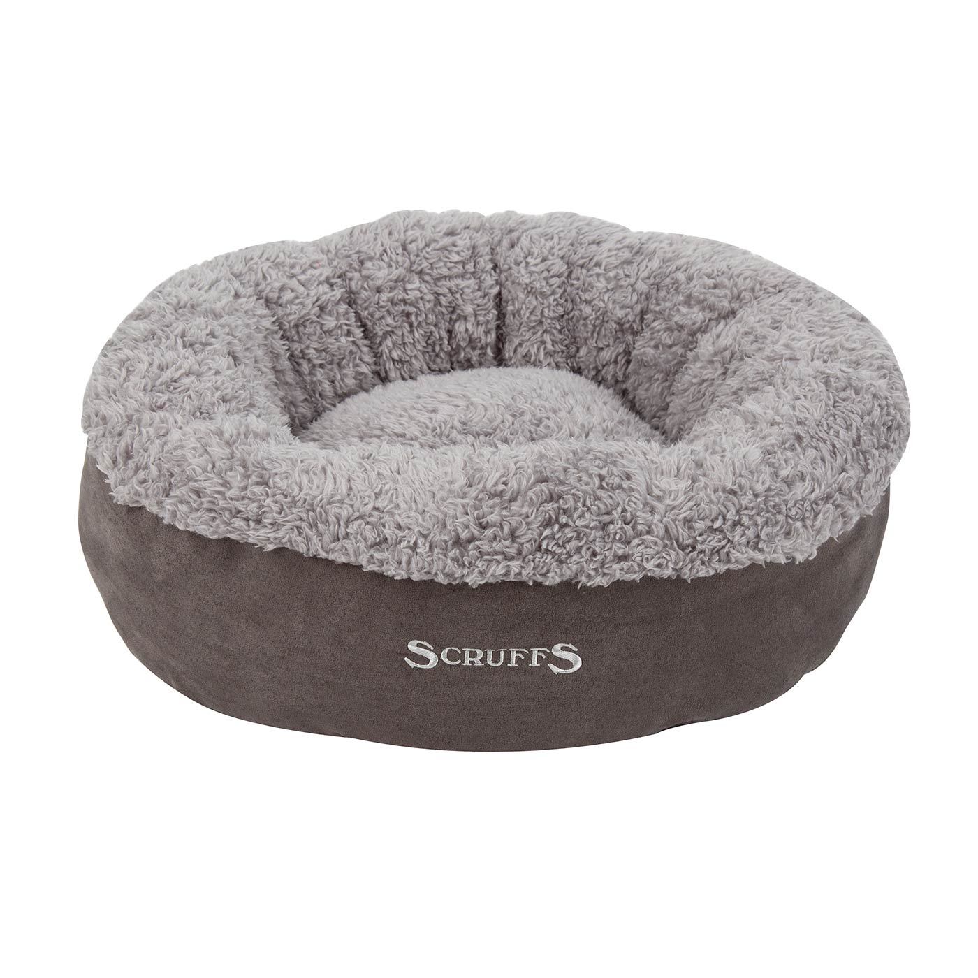 A two tone faux suede and plush bed filled with recycled PET fibre to ensure comfort, resilience and insulation. With a non slip base and the whole bed is machine washable. Designed for cats, puppies and small breed dogs.