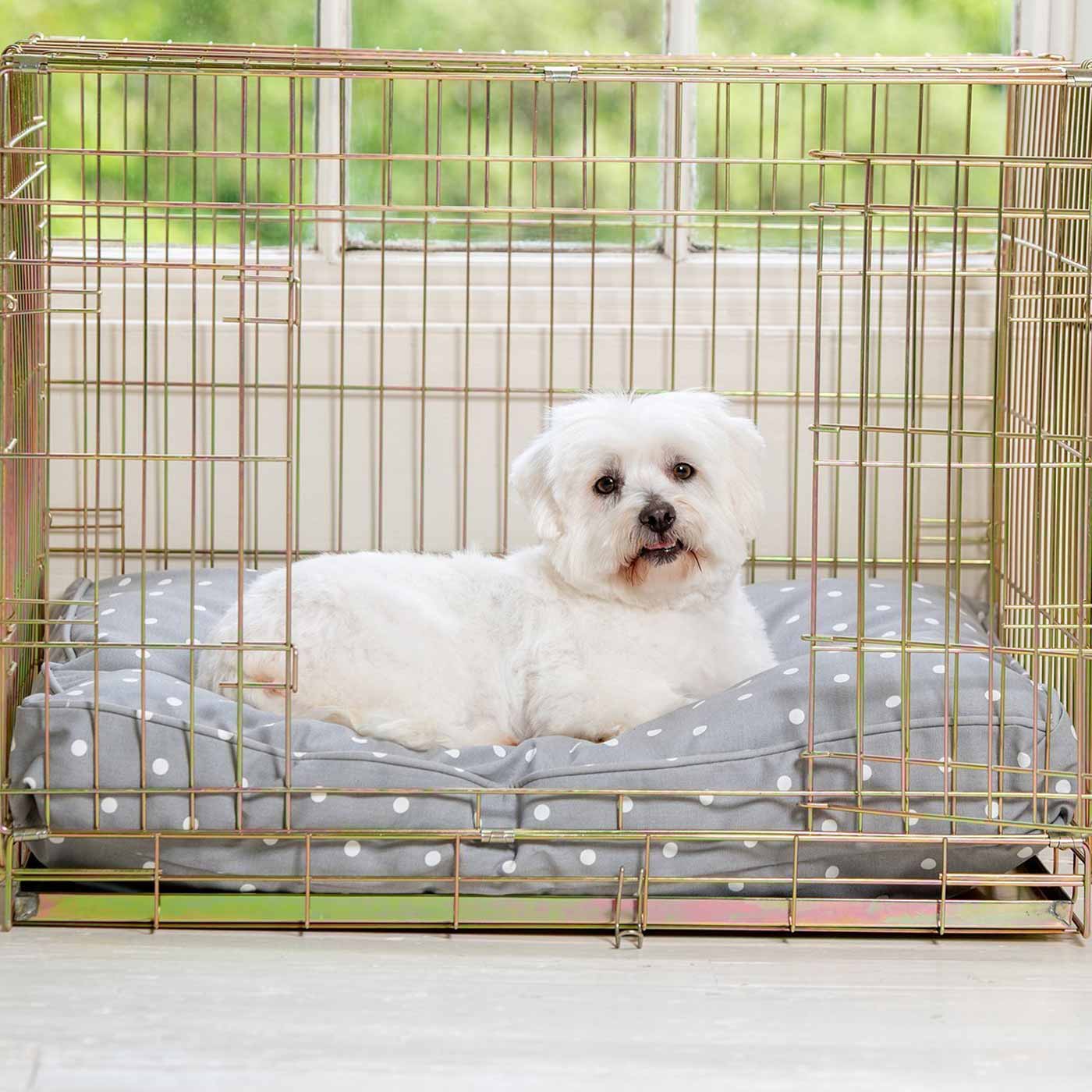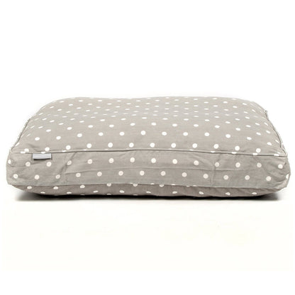 The Lords & Labradors Dog Cushion in Grey Spot will offer your adult dog or puppy the most comfortable place to nap, rest and sleep. Our cushions are deeply filled and feature removable washable covers, making them practical as well as stylish. This version of our cushion dog bed comes in our signature grey spot fabric. Grey spot is a classic polka dot design on a subtle grey background. Versatile and timeless, it will look great in any home for years to come.