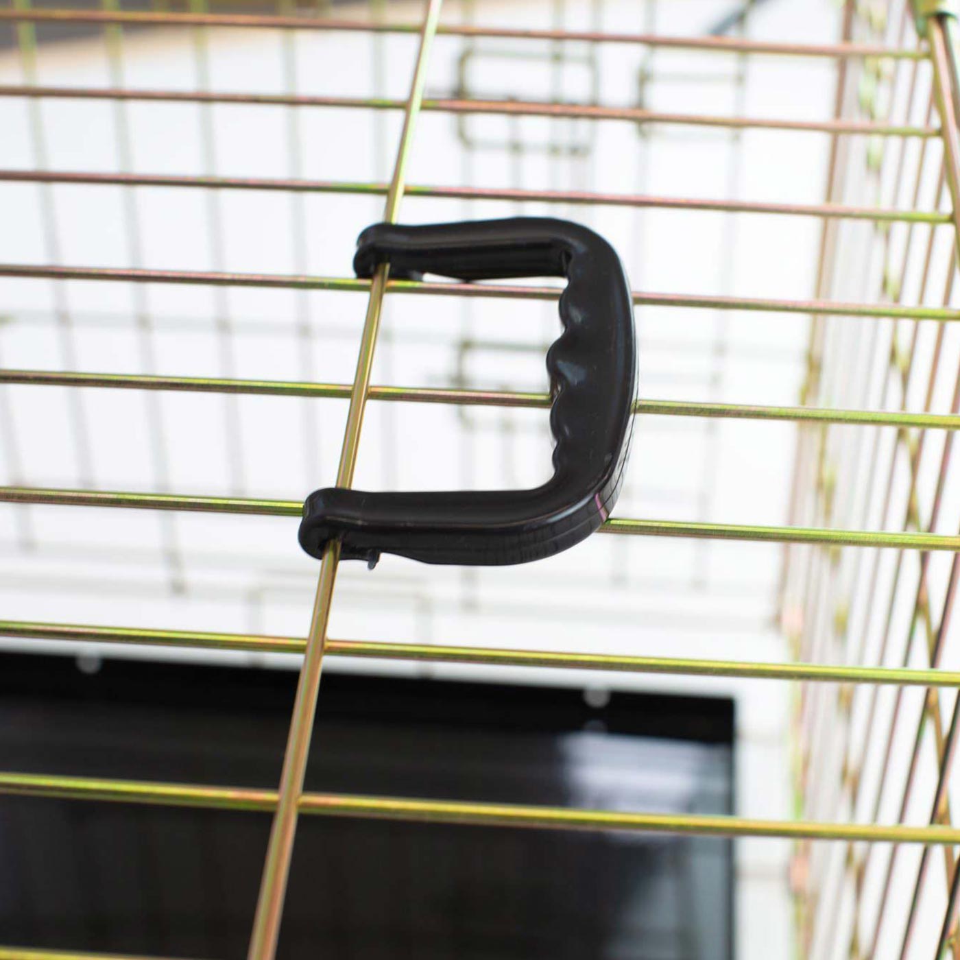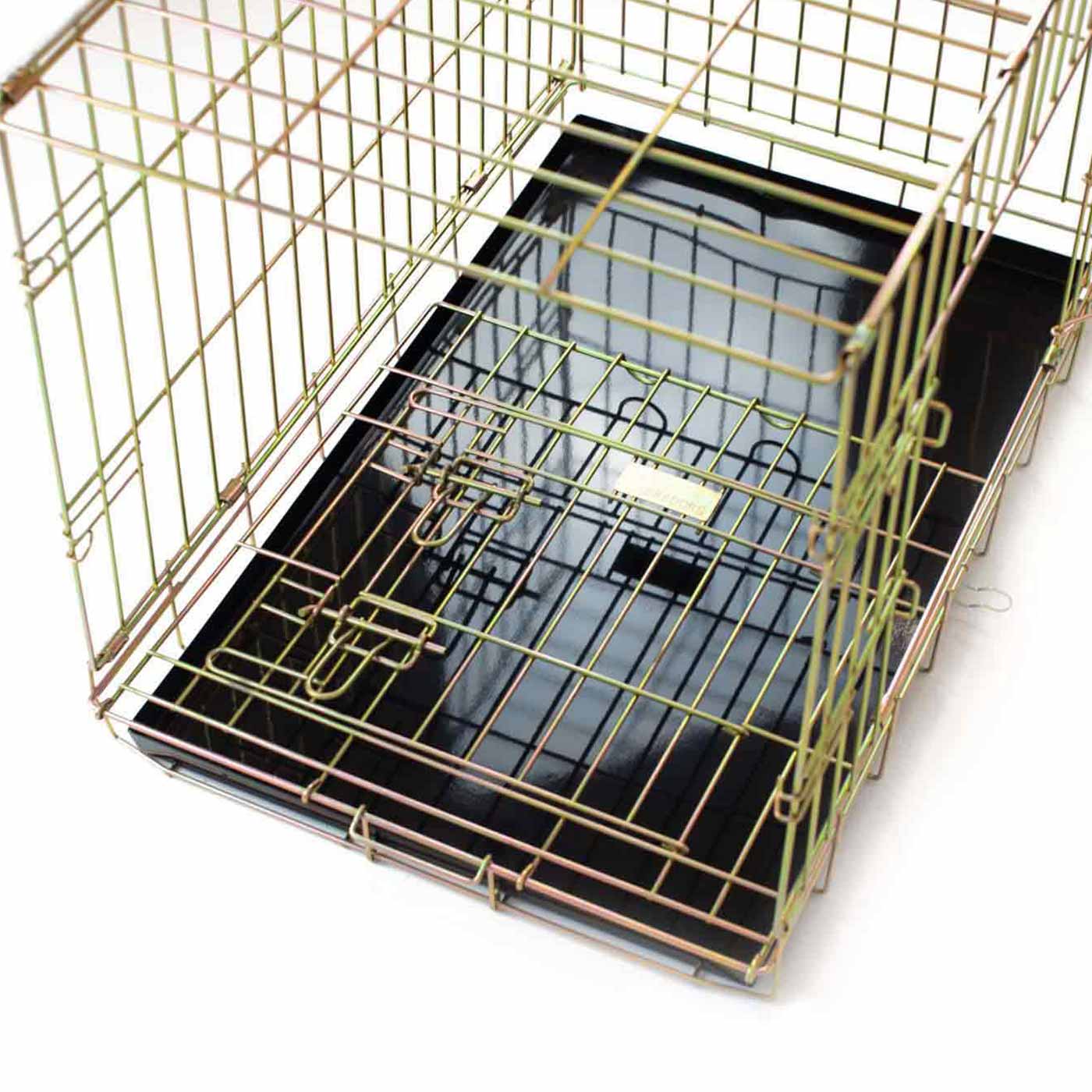 - There is a black metal floor tray that is easily removable for cleaning, great for puppies that love to chew!