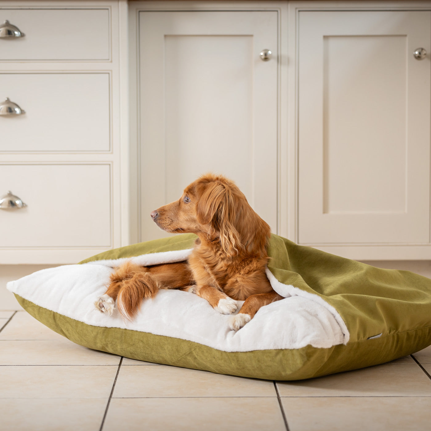 Sleepy Burrows Bed With Removable Cover In Olive Velvet by Lords & Labradors