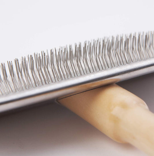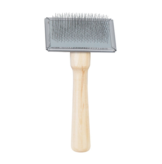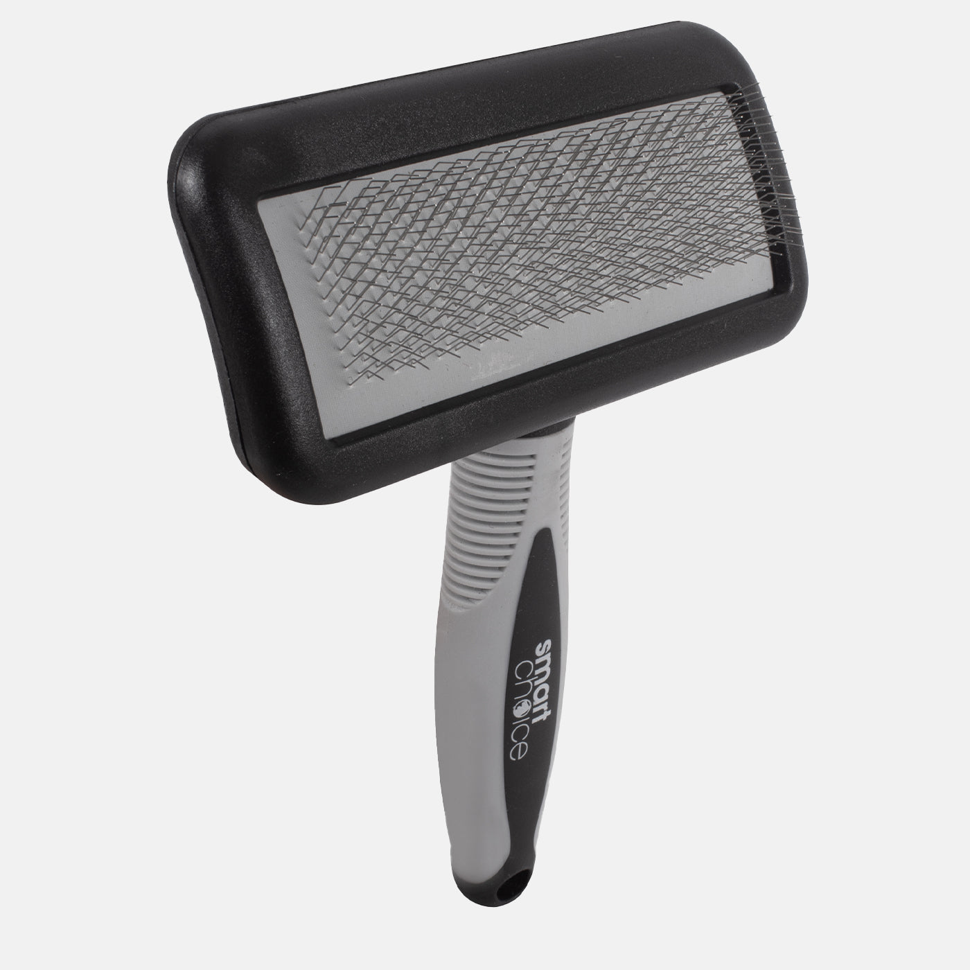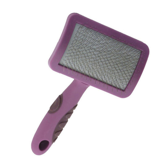 The Slicker Grooming Brush is ideal for medium to long, extra thick or curly coats. It helps to keep your pet's coat bright, shiny and soft with its cushion pins for comfort and a soft grip handle for support. The brush also detangles and smooths fur for a revitalised look.