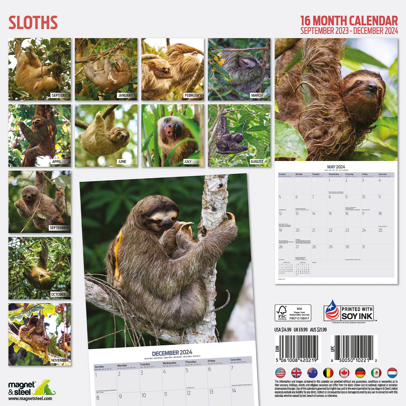 The Sloths Calendar 2025 is the perfect gift for any sloth lover. With a beautiful image for each month, this 16 month wall calendar will keep you organised with its clear grids and notes section. Stay on top of your schedule from September 2024 to December 2025.