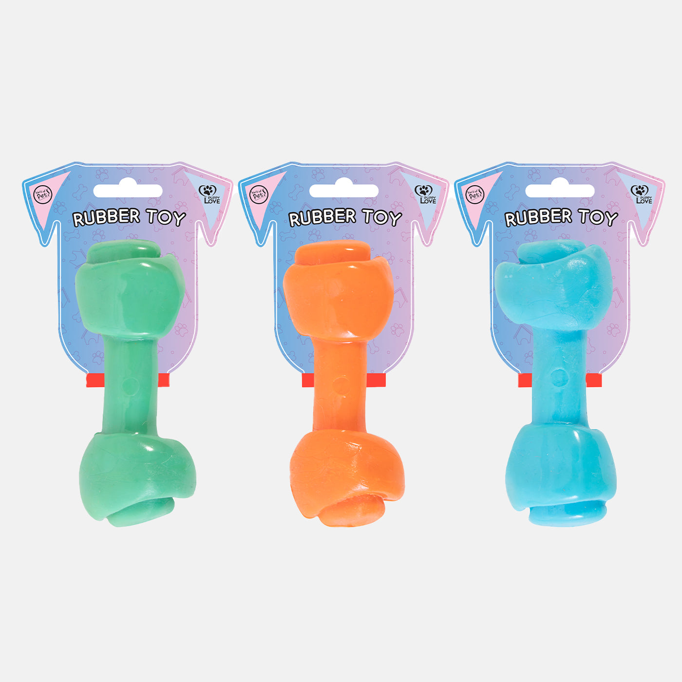 Designed to give your pets hours of playtime, this two pack of chew toys includes a bone and rubber ring, both made with strong rubber for durability and long-lasting fun. The unique shape and texture of the toys helps to strengthen jaw muscles and clean teeth while they squeak for an added level of fun.
