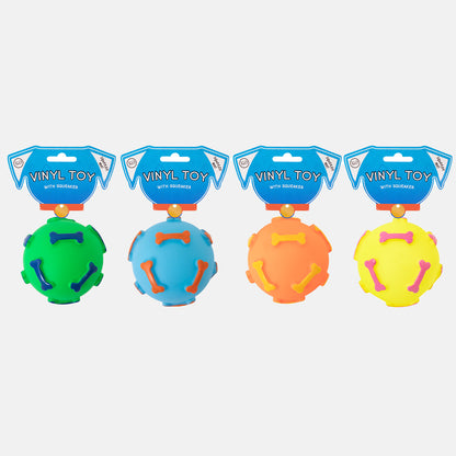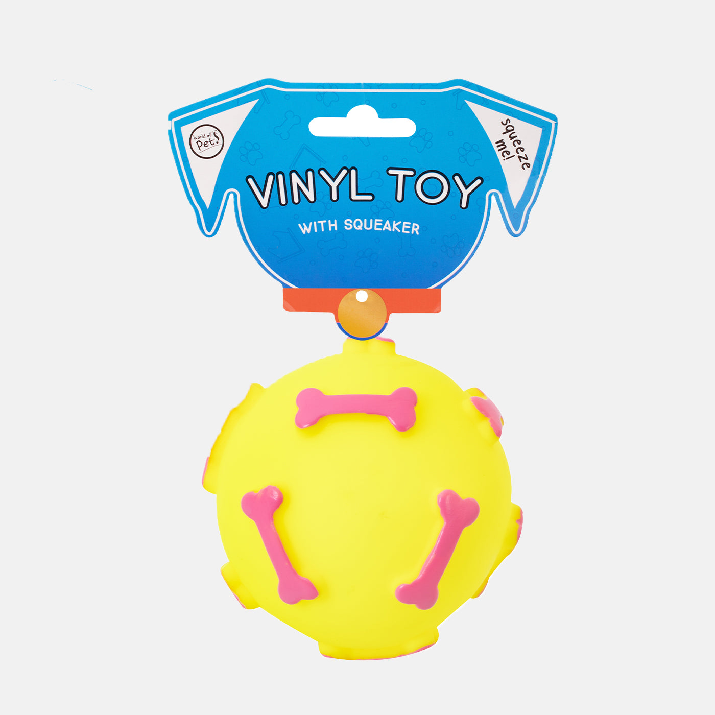 The Squeaky Vinyl Golf Ball Dog Toy is a great way to keep your pup entertained. Its squeakers provide extra fun, while the design also helps promote strong jaw muscles and healthy teeth and gums. Plus, its bright colours make it easy to spot on your walks.