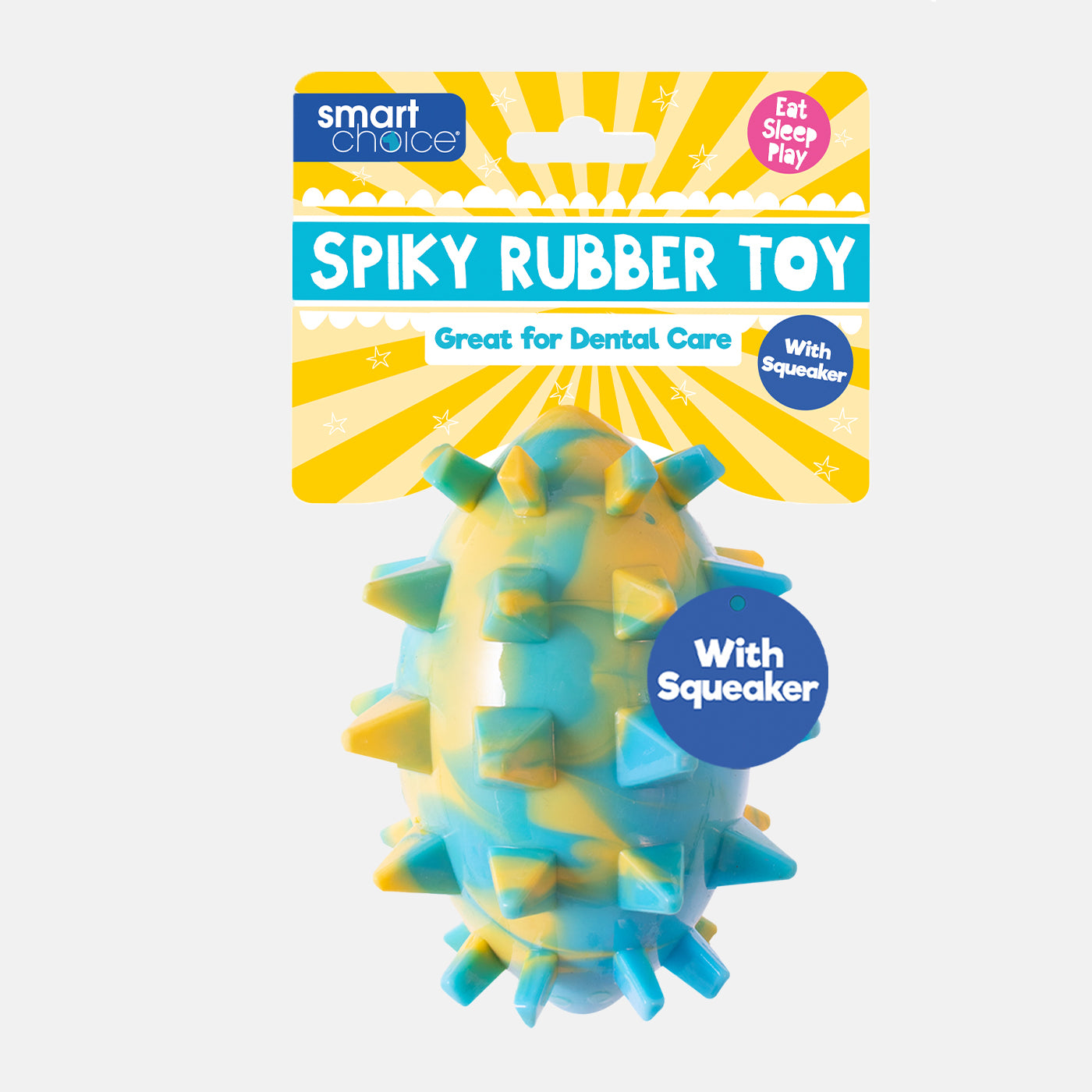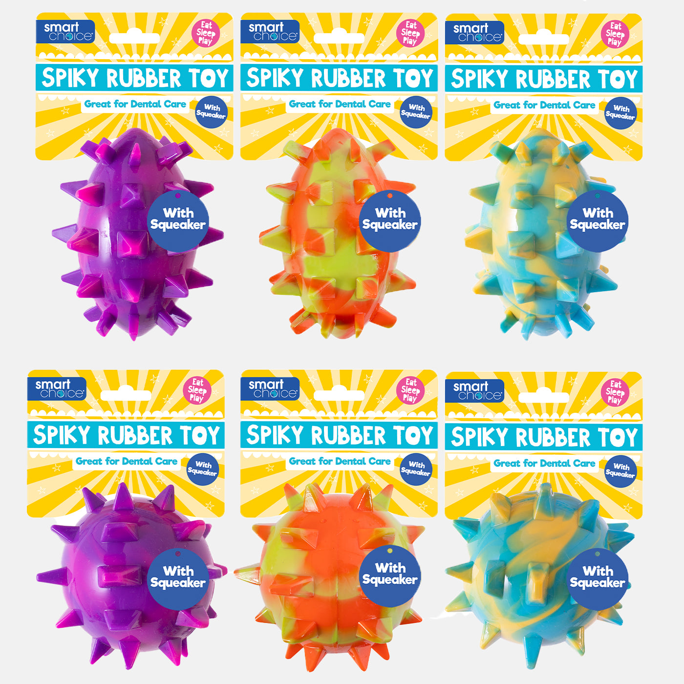 This 3-pack of spiky rubber ball dog toys is made of tough rubber, perfect for long-lasting playtime. Each ball has a distinctive squeak to help keep your pet’s attention, as well as bright colours to make them easy to spot on your walks. Chewing also promotes healthy dental hygiene by reducing plaque and tartar buildup.