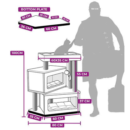 This Sweet Petit Mansion 100cm Cat Tree provides your cat with a luxurious hideaway done in a modern, angled design. It features thick scratching poles and rope, plus two cosy sleeping holes or large bed at the top. Perfect for kittens, but suitable for all sized and breeds of cats, it comes in three colours.