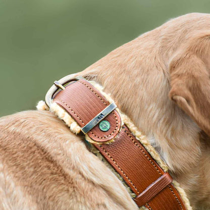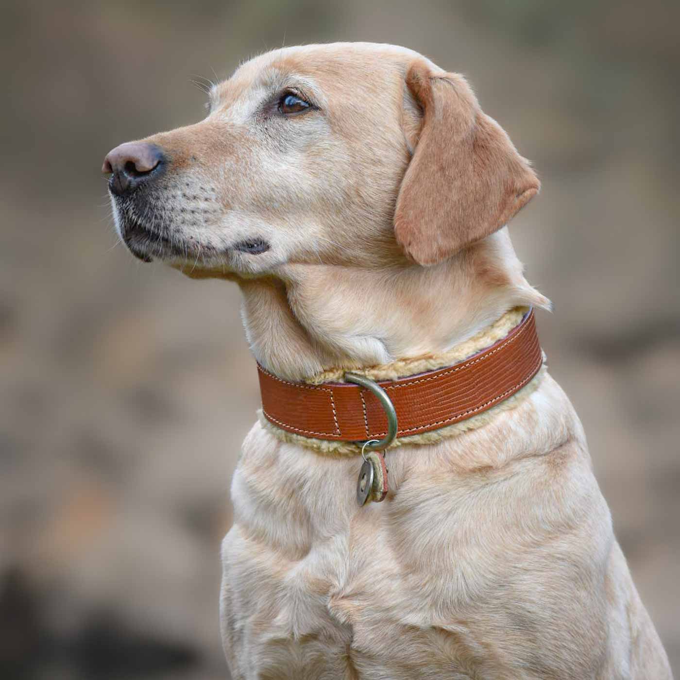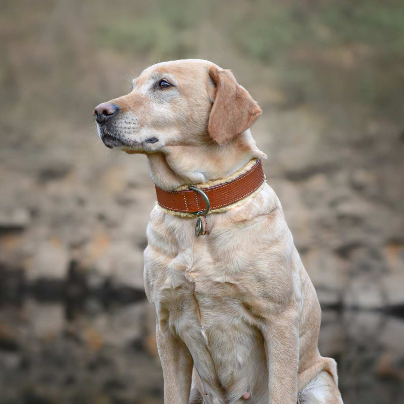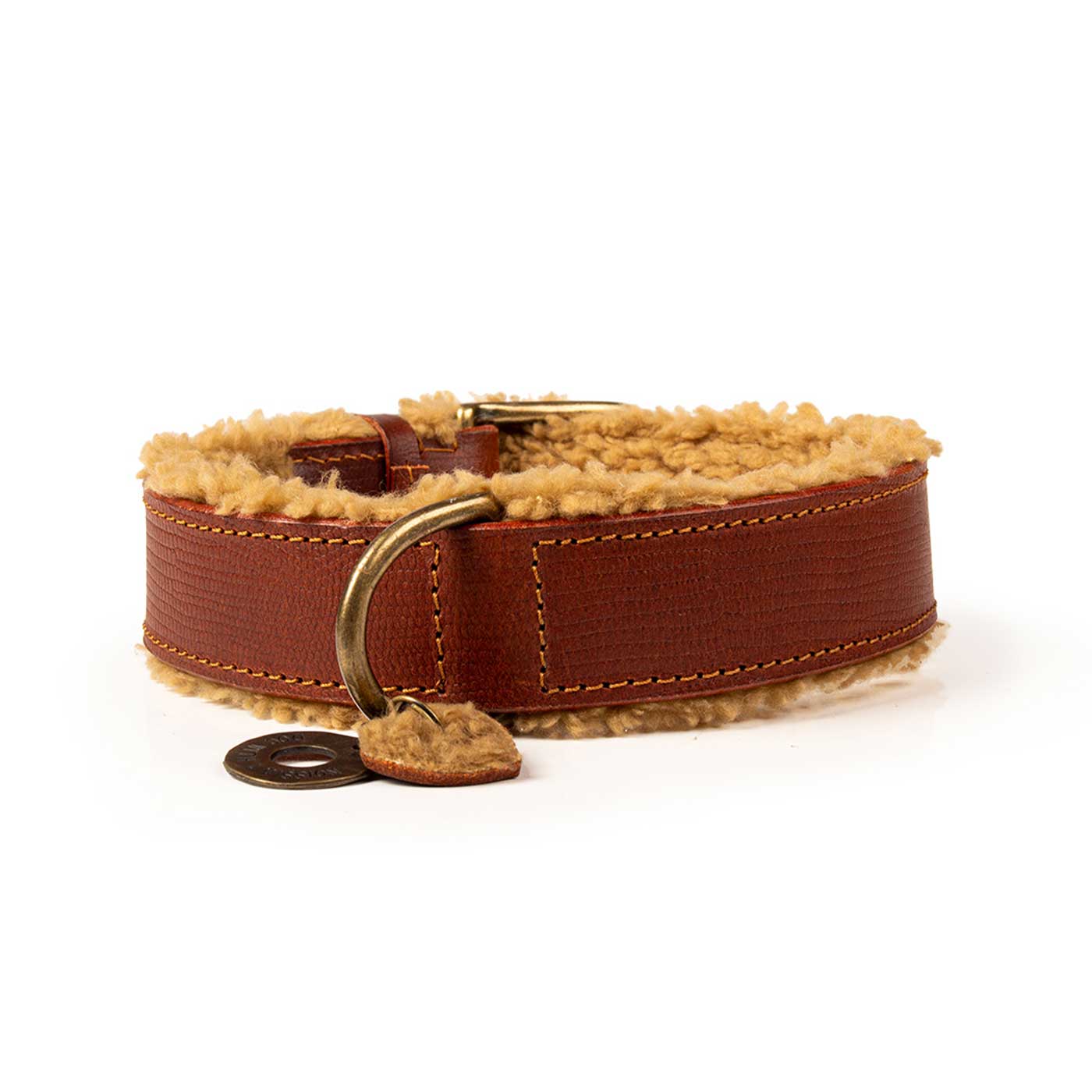 - Luxury leather dog collar lined with wool for comfort and warmth