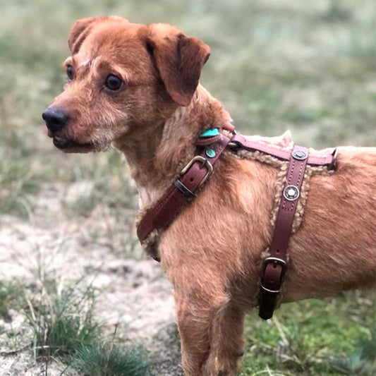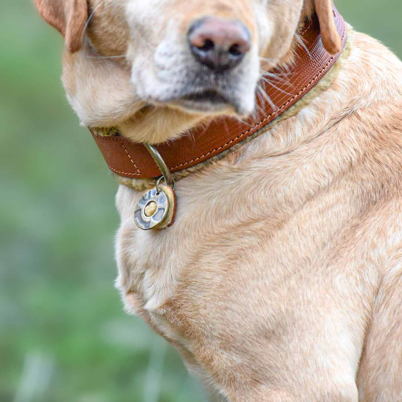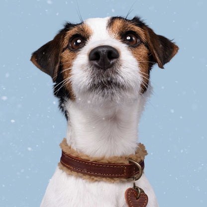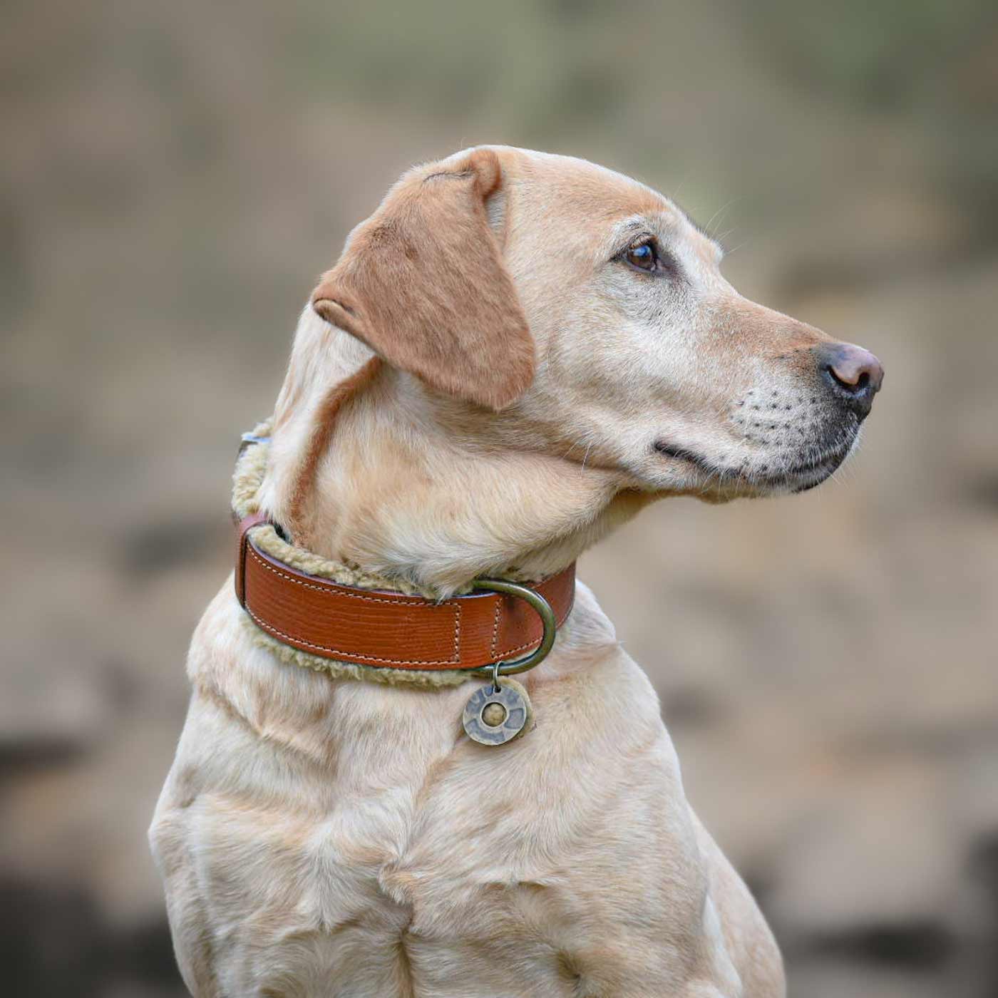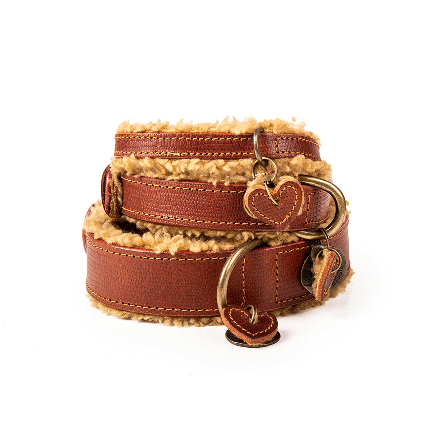 - Luxury leather dog collar lined with wool for comfort and warmth