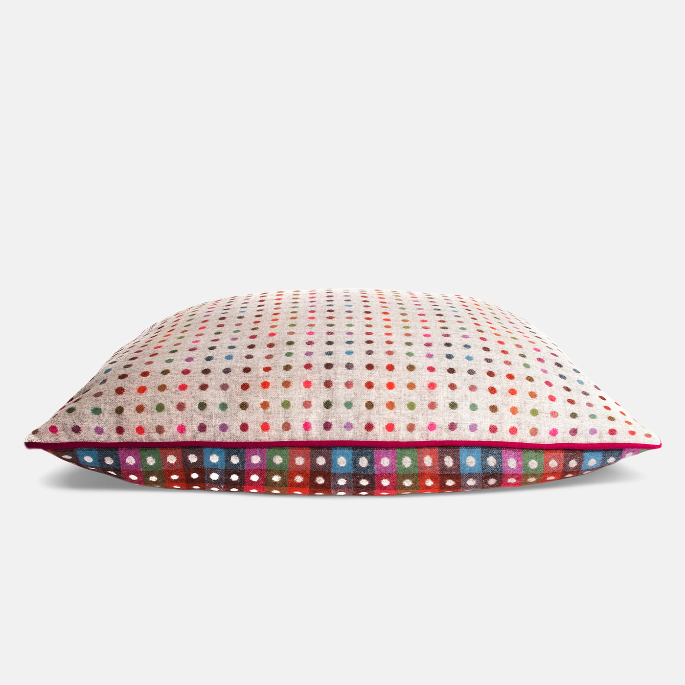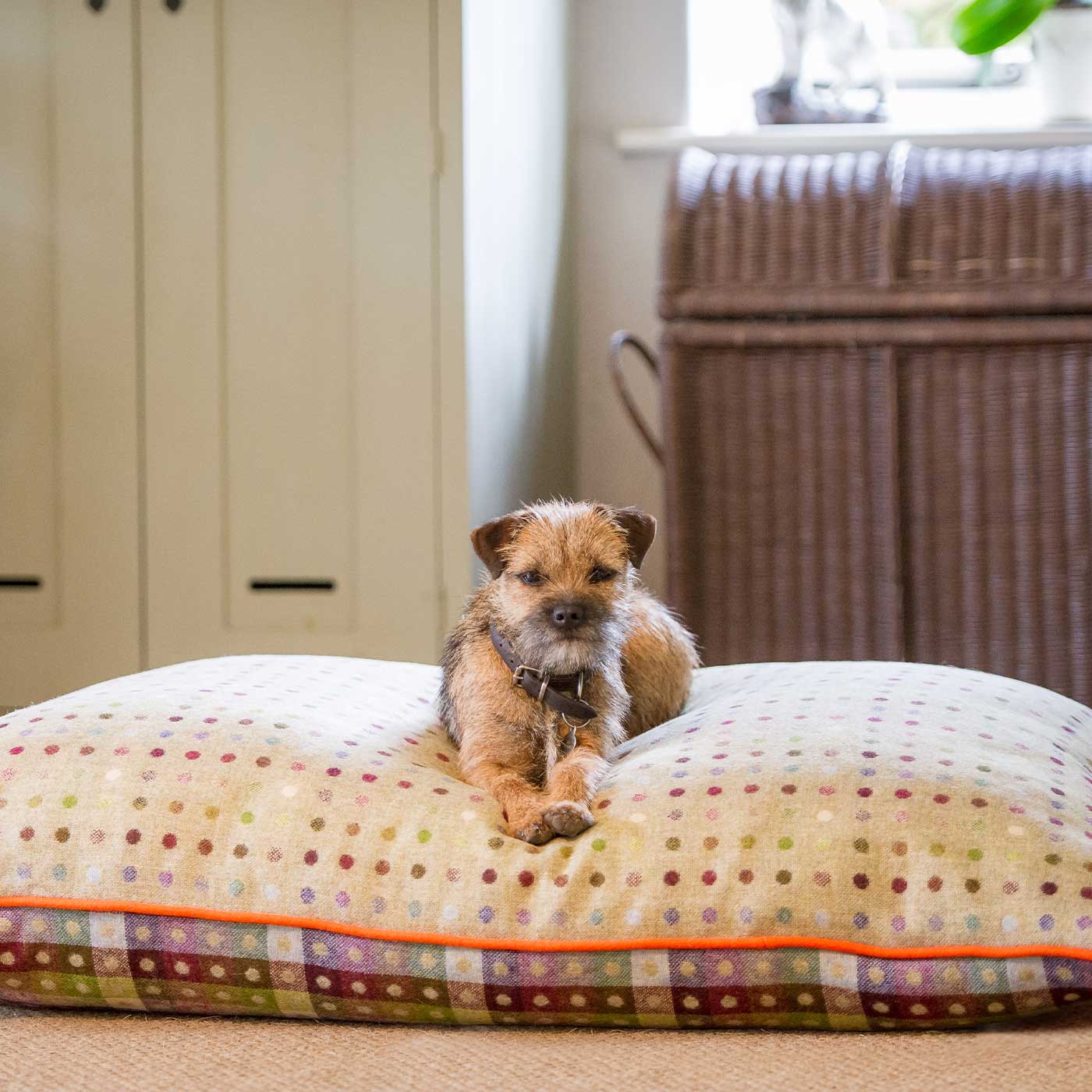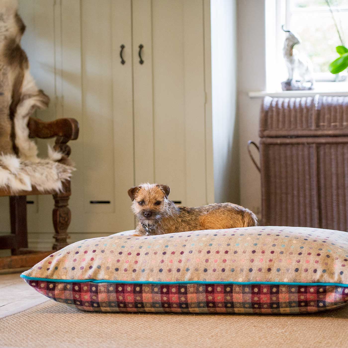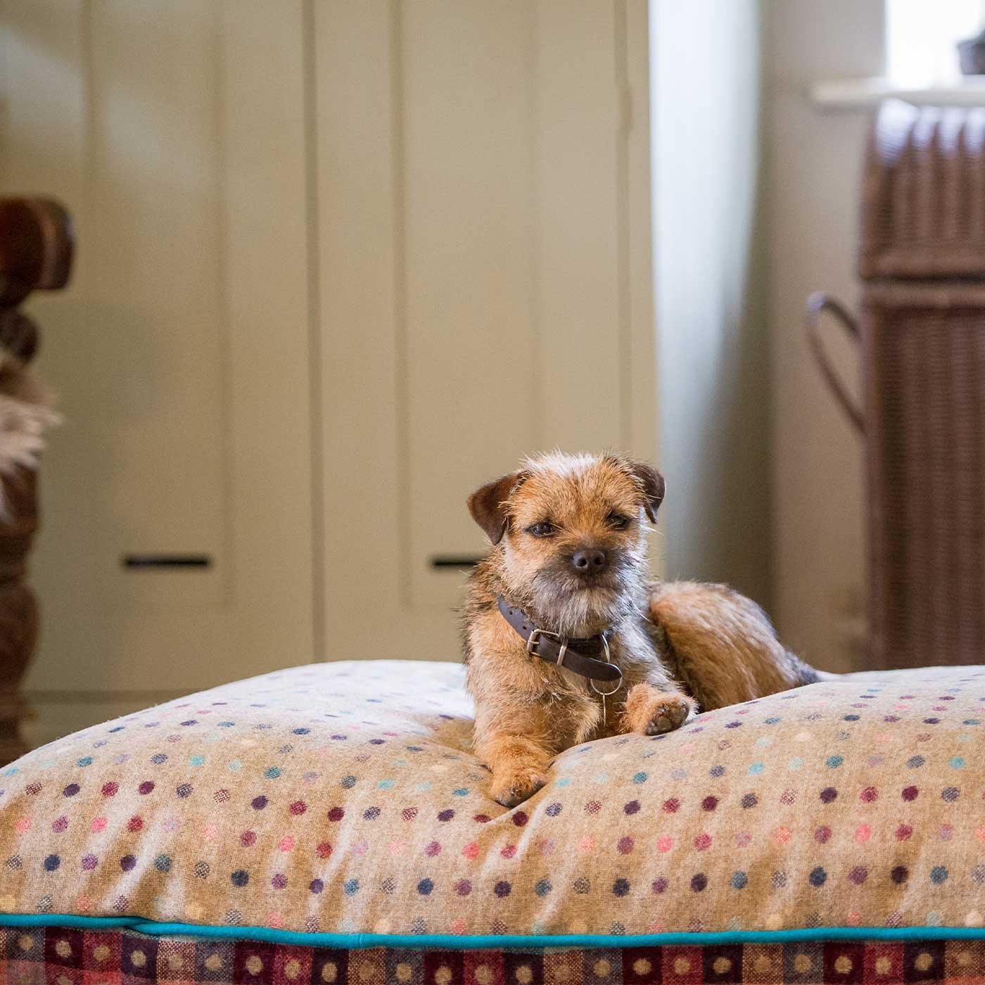 The Lounging Hound Multi Spot Wool Bed is the perfect bed for your pup's restful sleep. Featuring a fully reversible design with two spot patterns to choose from, the high-quality filling offers superior comfort. The removable cover has a concealed zip and is machine washable, crafted from 100% pure wool for a luxurious feel.