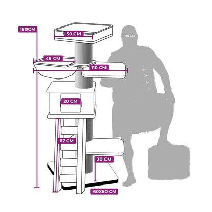 Give your furry rebel a place to call home with The Rebels Ragdoll 180cm Cat Tree! Boasting extra large hammocks, sleeping caves, stairs, and a ladder, this tree has all your kitty could ask for in a great-looking package. Packed with sleeping spots for your feline friend to pick their favorite, work their claws, and climb, it's purrrfect for cats of all sizes! Plus, with a thick base and post, you know it's built to last. Say goodbye to your old boring cat tree and give your rebel a home that's fit for royalty!