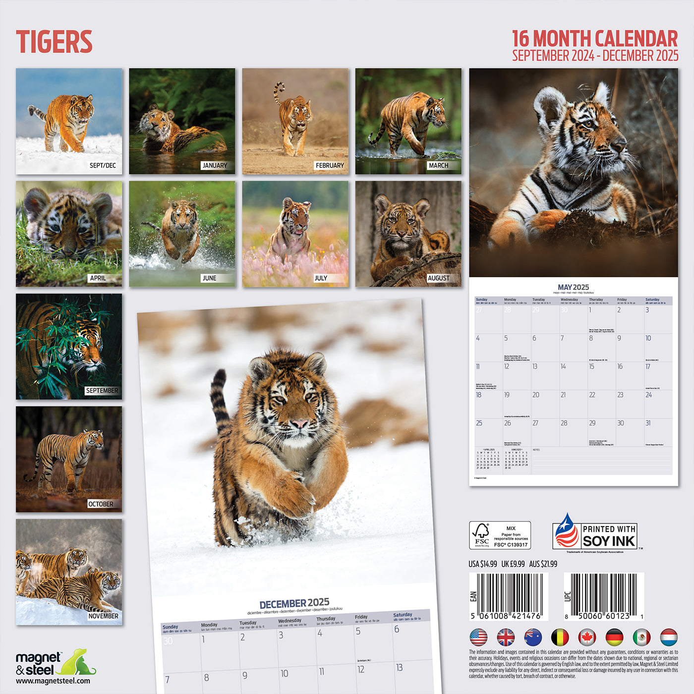 Stay organised and show off your love for tigers with the Tigers Calendar 2025. This 16-month wall calendar features stunning images of tigers for each month, perfect for any tiger lover. With clear grids and a notes section, it's the perfect way to plan ahead for September 2024 to December 2025. The perfect gift for any tiger enthusiast.