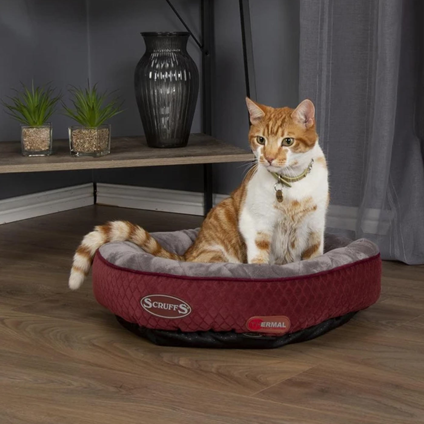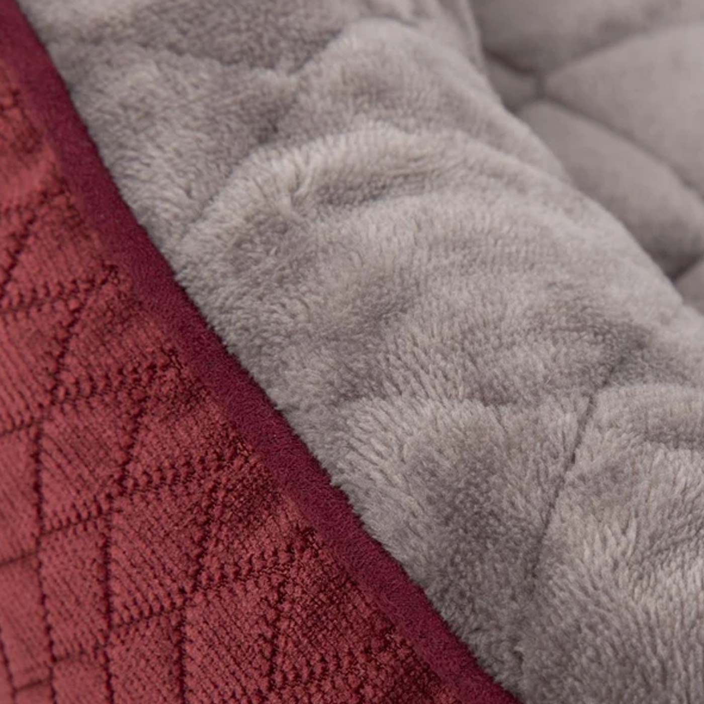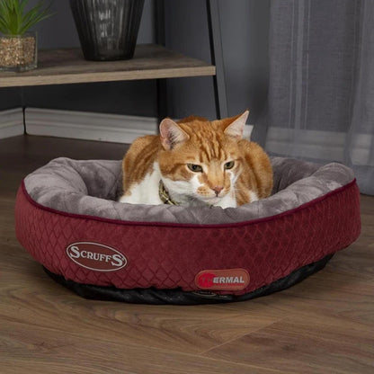A two tone faux suede and plush bed filled with recycled PET fibre to ensure comfort, resilience and insulation. With a non slip base and the whole bed is machine washable. Designed for cats, puppies and small breed dogs.