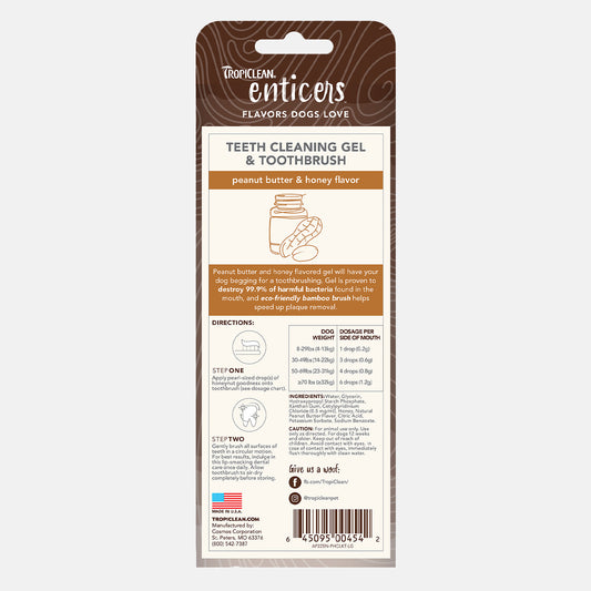 TropiClean Enticers Teeth Cleaning Gel & Toothbrush for Small/Medium Dogs - Peanut Butter