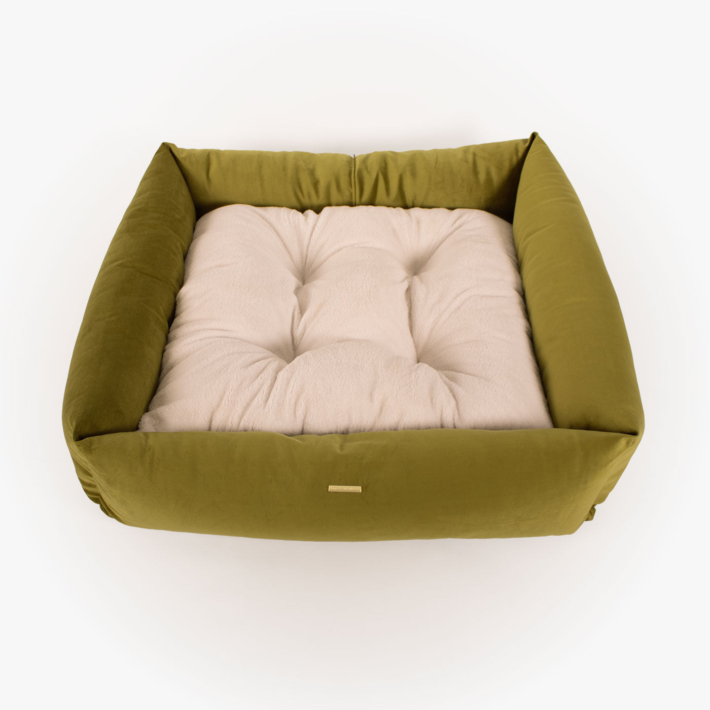 Box Bed With Removable Covers In Olive Velvet by Lords & Labradors