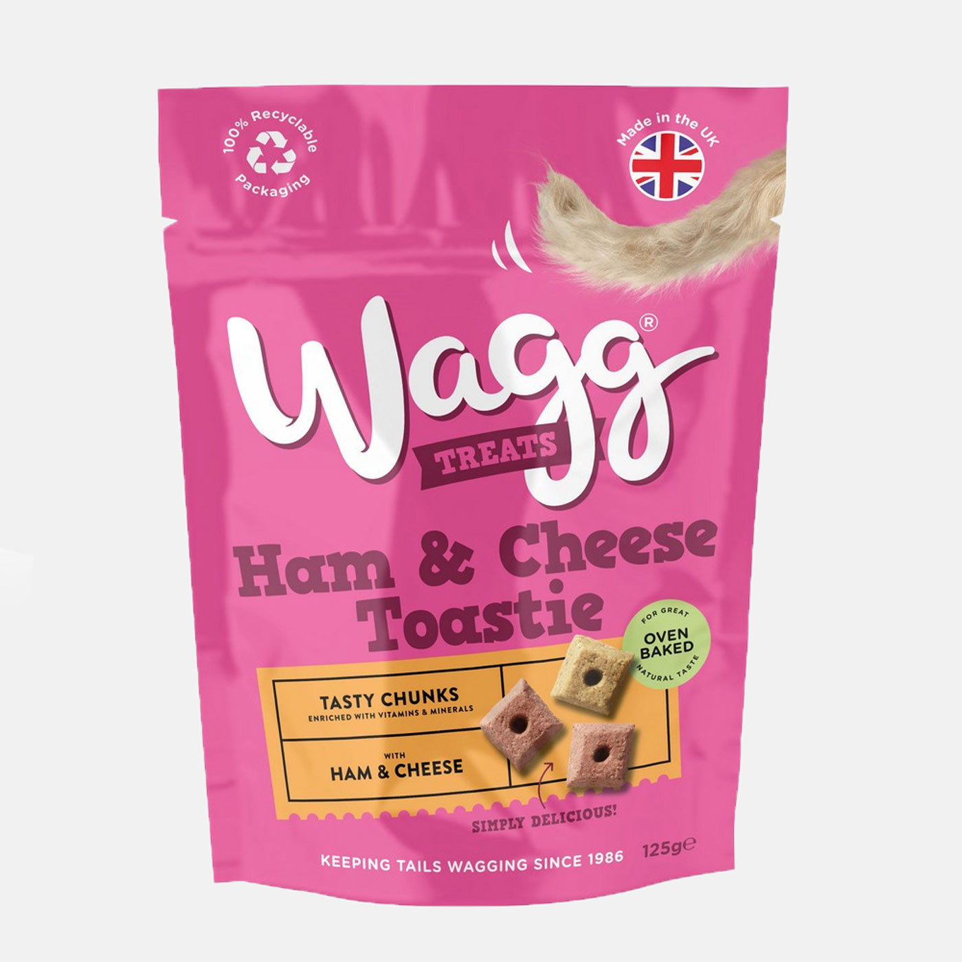Delight your four-legged friend with Wagg Ham & Cheese Dog Treats! These delectable morsels are made with the tastiest chunks of succulent ham and cheese, so your pup will be thrilled. Keep your pooch's tail wagging all day with these irresistible 125g treat packs – perfect for all dogs from 8 weeks onwards!