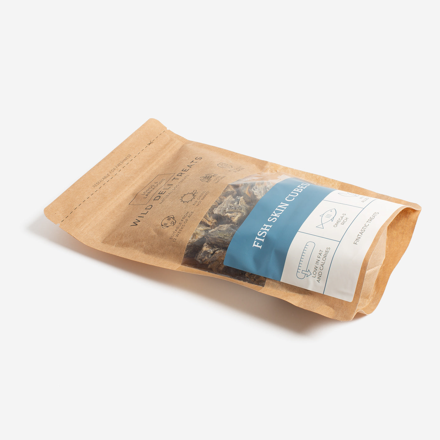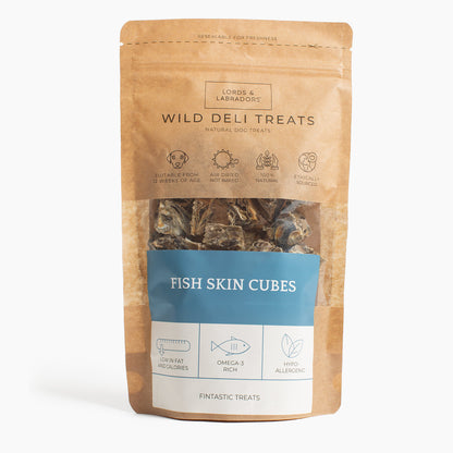 Pamper your pup with these crunchy Lords & Labradors Wild Deli Fish Skin Bites Treats! Made with 100% delicious whitefish, these air-dried treats are low-calorie and low-fat - but also packed with Omega-3 goodness. Slip a few of these yummy snacks to your four-legged friend and watch them go wild!