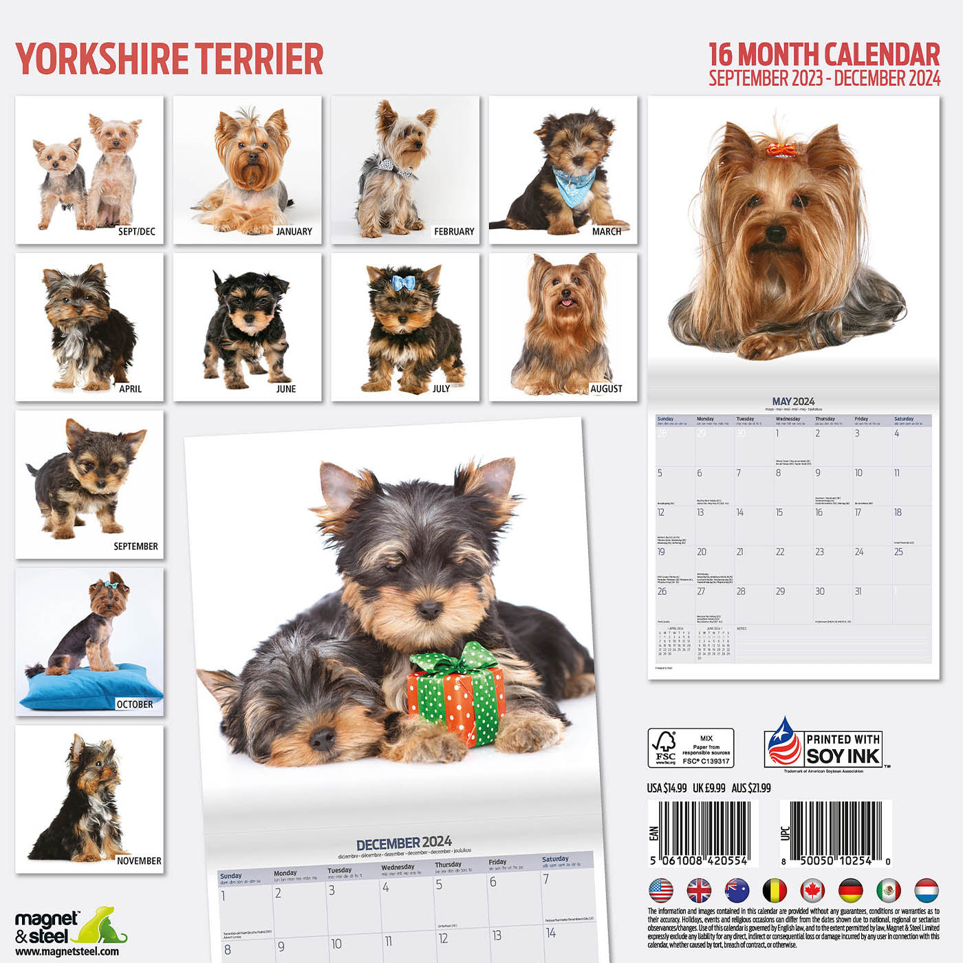 Stay organised and inspired in 2025 with the Yorkshire Terrier Modern Calendar. Showcasing adorable themed photos each month and including clear grids and a notes section, this calendar is the perfect gift for any Yorkie lover. Spanning 16 months from September 2024 to December 2025, it's the ideal way to keep track of your schedule.