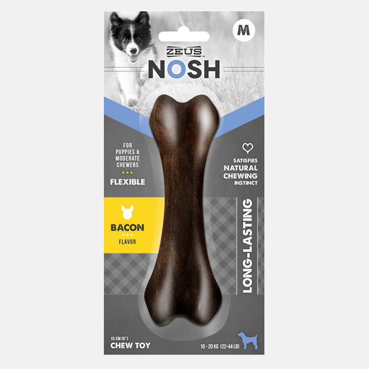 Introducing the Zeus Nosh Flexible Chicken Chew Bone, the perfect solution for teething puppies. Its delicious chicken flavour offers relief from teething, while also helping to alleviate boredom and stress. Not only that, its unique design promotes good dental hygiene. Available in two sizes, this chew bone provides a fun and healthy way to keep your pup entertained.