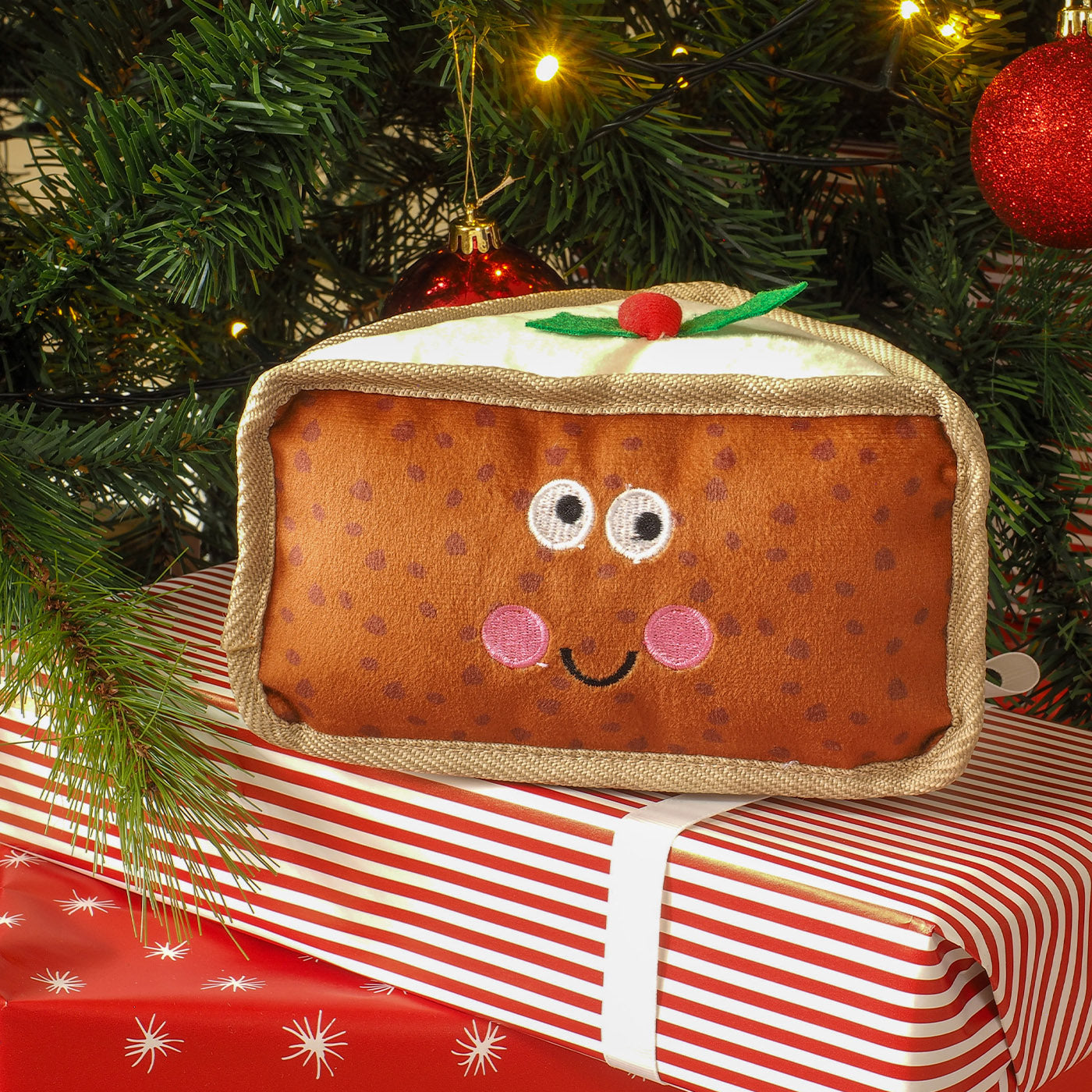 Let your furry friend join in on the Christmas festivities with the Zoon Xmas CakePal Toy! Made from soft fabric for bedtime snuggles, this adorable cake toy also has a hidden squeaker to keep your dog entertained. Give them their own way to celebrate with this cute and playful toy.