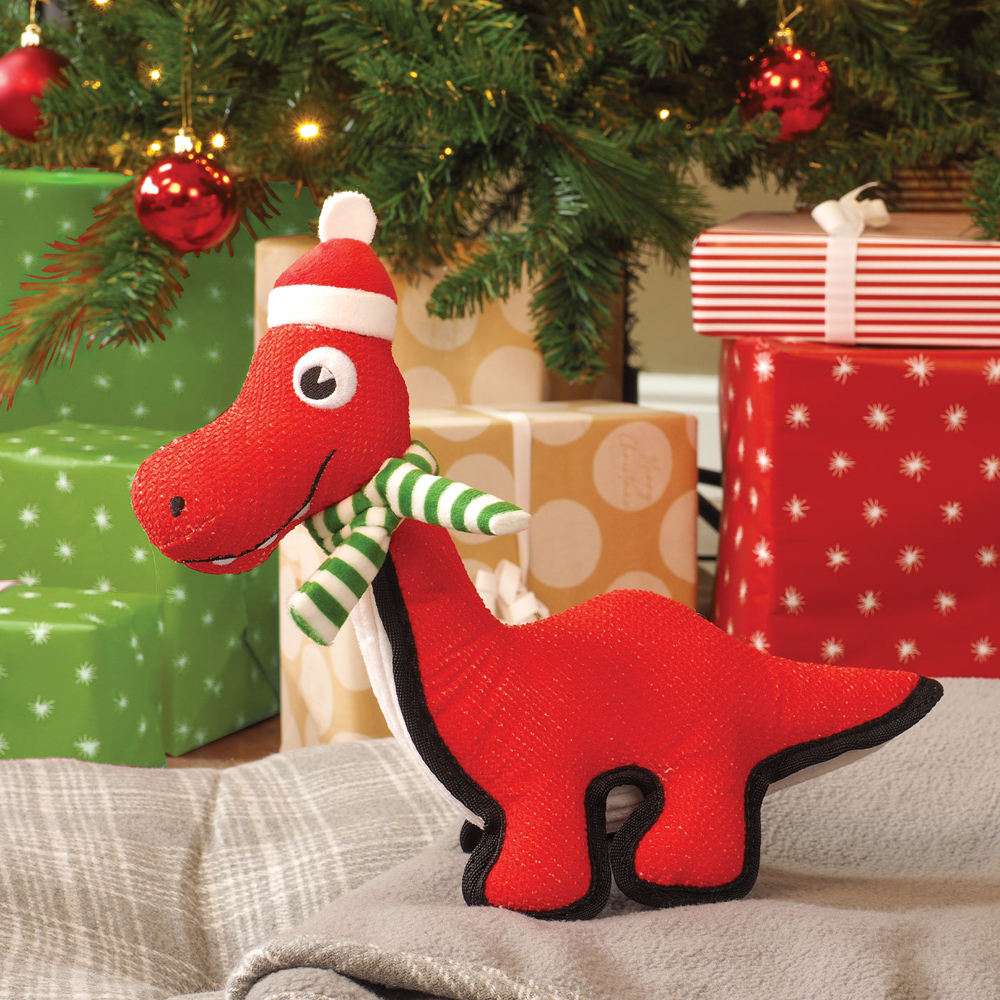 Get your dog into the Christmas spirit with the Zoon Xmas DinoPal Toy. Made from tough material, it's a T-Rrific addition to their toy box. They'll love the hidden squeaker and adorable Christmas hat and scarf. (Jurassic cheer for your furry friend!)